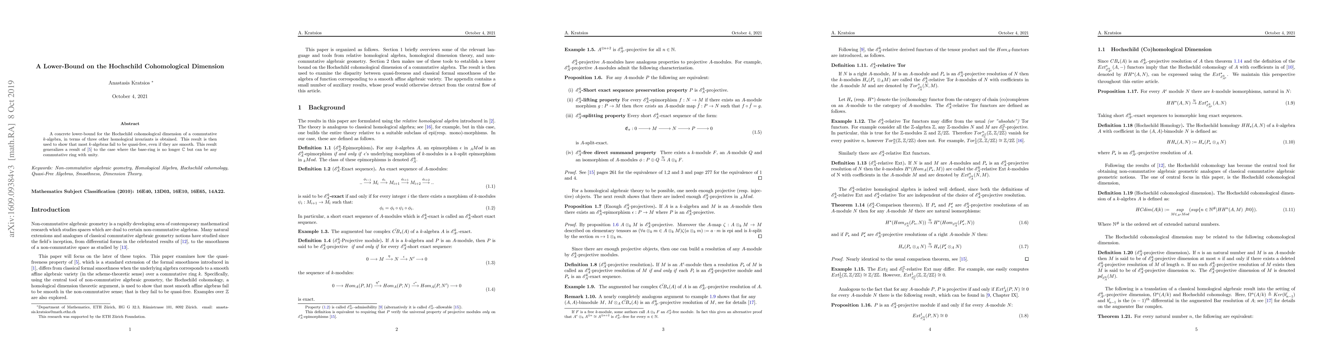 A concrete lower-bound for the Hochschild cohomological dimension of a commutative $k$-algebra, in terms of three other homological invariants is obtained. This result is then used to show that most $k$-algebras fail to be quasi-free, even if they are smooth. This result generalizes a result of \cite{cuntz1995algebra} to the case where the base-ring is no longer $\cc$ but can be any commutative ring with unity.