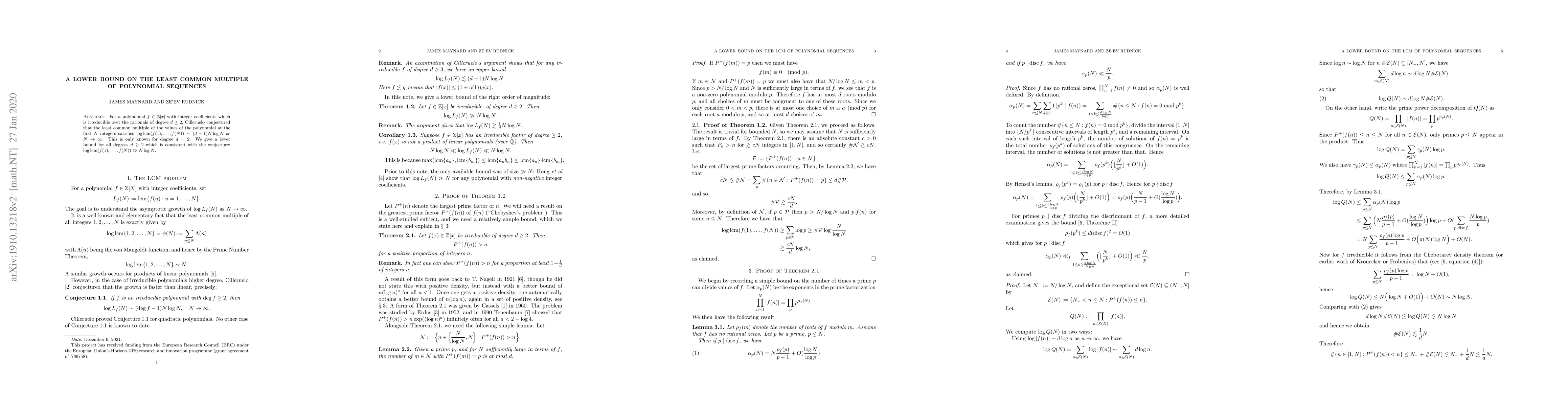 A paper provides a lower bound on the least common multiple of polynomial sequences, showing that it grows faster than N log N for all degrees d >= 2, consistent with a conjecture about polynomials.