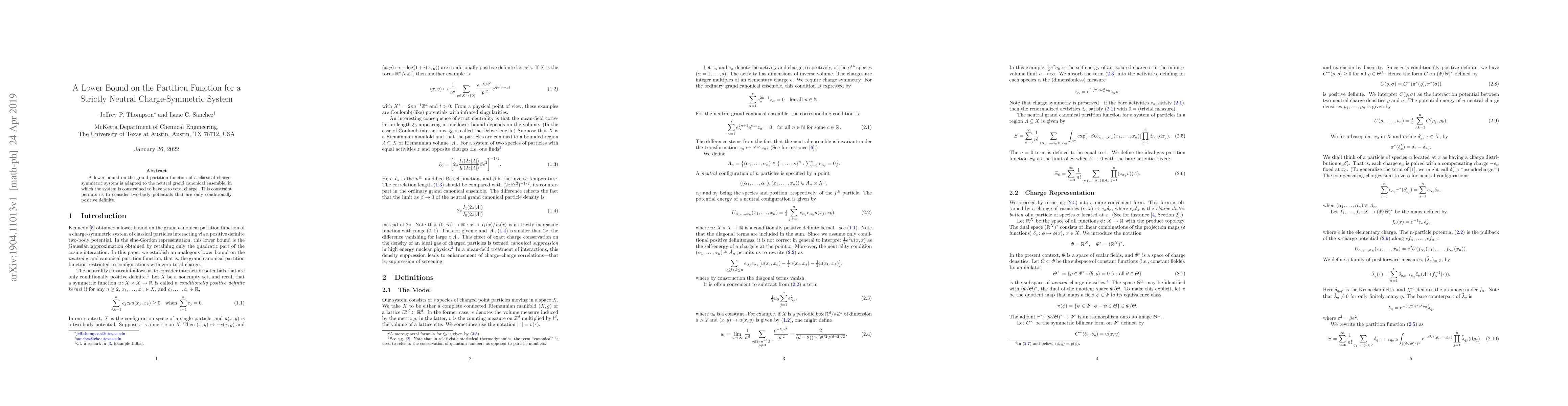 A lower bound on the grand partition function of a classical charge-symmetric system is adapted to the neutral grand canonical ensemble, in which the system is constrained to have zero total charge. This constraint permits us to consider two-body potentials that are only conditionally positive definite.