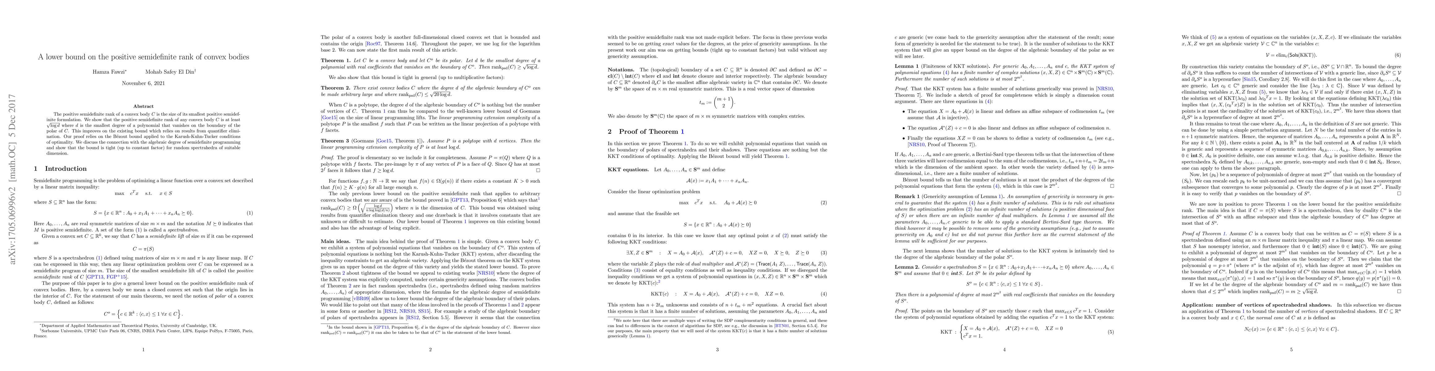 This paper establishes a new lower bound for the positive semidefinite rank of convex bodies, showing it is at least $\sqrt{\log d}$, where $d$ is the smallest degree of a polynomial vanishing on the boundary of the polar of the convex body. The result improves upon previous bounds and is proven using the B\'ezout bound and KKT conditions.