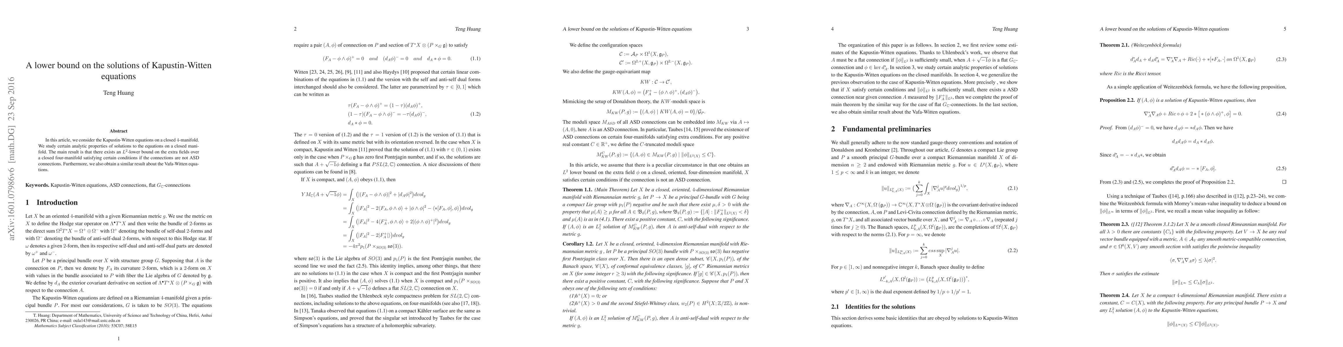 In this article, we consider the Kapustin-Witten equations on a closed $4$-manifold. We study certain analytic properties of solutions to the equations on a closed manifold. The main result is that there exists an $L^{2}$-lower bound on the extra fields over a closed four-manifold satisfying certain conditions if the connections are not ASD connections. Furthermore, we also obtain a similar result about the Vafa-Witten equations.