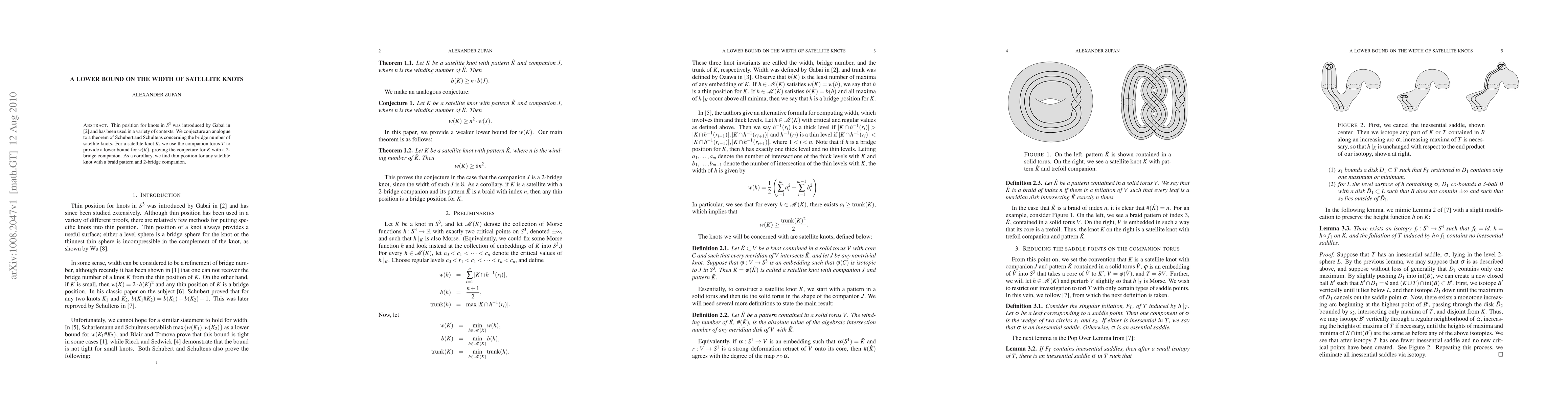 This paper conjectures a lower bound for the width of satellite knots using their companion tori, proving the conjecture for satellite knots with 2-bridge companions. It also finds thin position for any satellite knot with a braid pattern and 2-bridge companion.