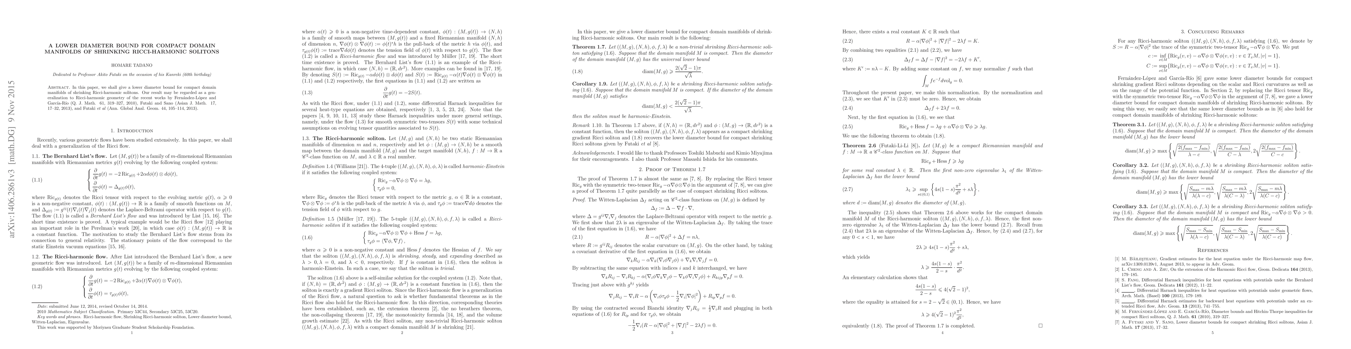 This paper establishes a lower diameter bound for compact domain manifolds exhibiting shrinking Ricci-harmonic solitons. The result extends recent findings in Ricci-harmonic geometry by Fernandez-López, García-Río, Futaki, Sano, and others.
