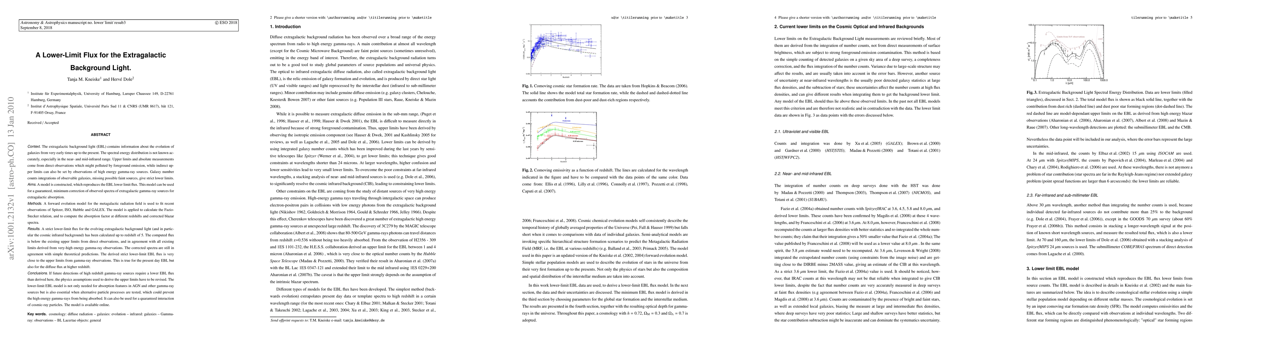 This paper establishes a strict lower-limit flux for the extragalactic background light (EBL), particularly the cosmic infrared background, up to redshift 5, aligning with existing observational and theoretical constraints. The derived flux is crucial for understanding gamma-ray absorption and cosmic-ray interactions.