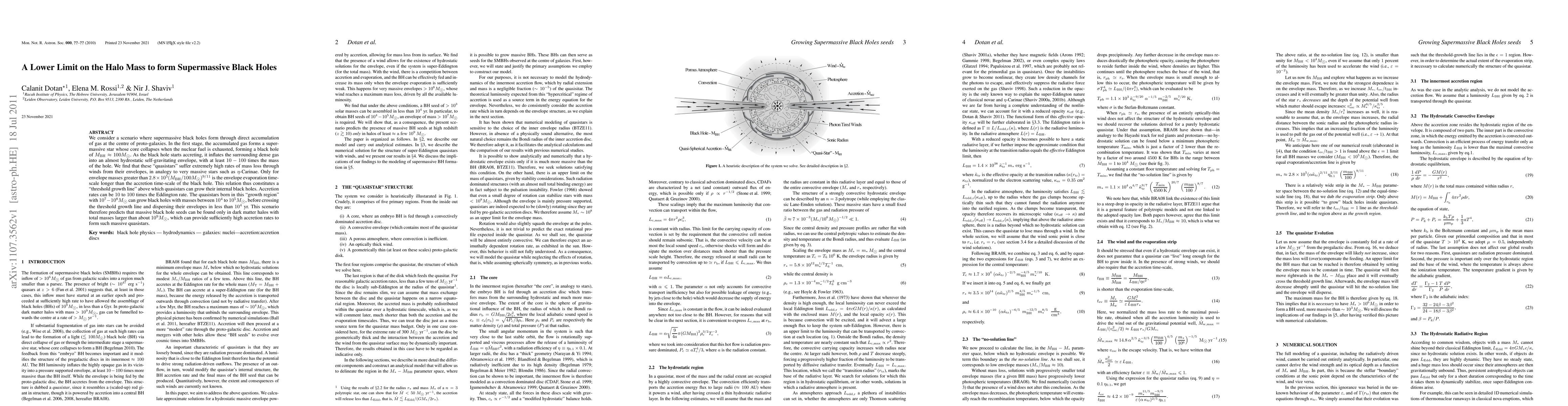 This paper explores the formation of supermassive black holes via direct gas accumulation in proto-galaxies, proposing that only dark matter halos with masses greater than 10^9 M_{\sun} can support the formation of these black holes through the evolution of quasistars. The study finds a "threshold growth line" for envelope mass, indicating that only envelopes above a certain mass can sustain black hole growth.