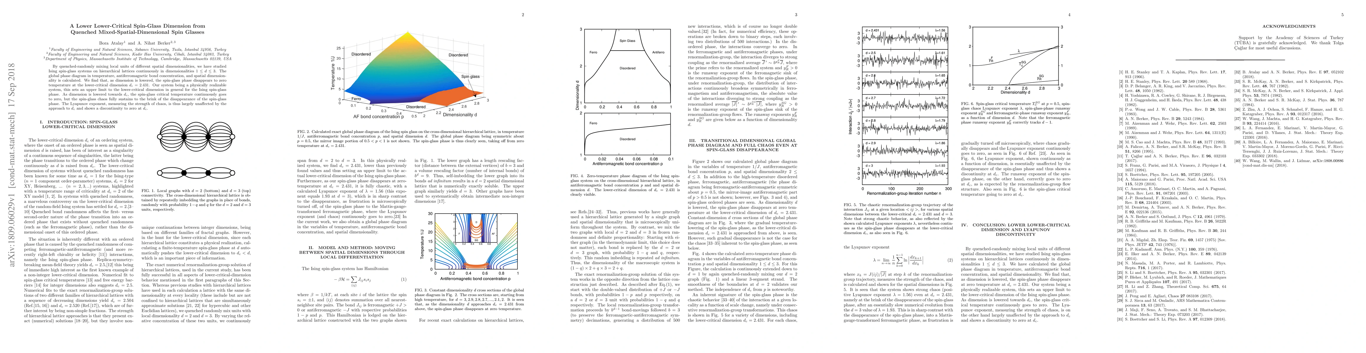 By quenched-randomly mixing local units of different spatial dimensionalities, we have studied Ising spin-glass systems on hierarchical lattices continuously in dimensionalities 1 =< d =< 3. The global phase diagram in temperature, antiferromagnetic bond concentration, and spatial dimensionality is calculated. We find that, as dimension is lowered, the spin-glass phase disappears to zero temperature at the lower-critical dimension d_c=2.431. Our system being a physically realizable system, this sets an upper limit to the lower-critical dimension in general for the Ising spin-glass phase. As dimension is lowered towards d_c, the spin-glass critical temperature continuously goes to zero, but the spin-glass chaos fully sustains to the brink of the disappearance of the spin-glass phase. The Lyapunov exponent, measuring the strength of chaos, is thus largely unaffected by the approach to d_c and shows a discontinuity to zero at d_c.