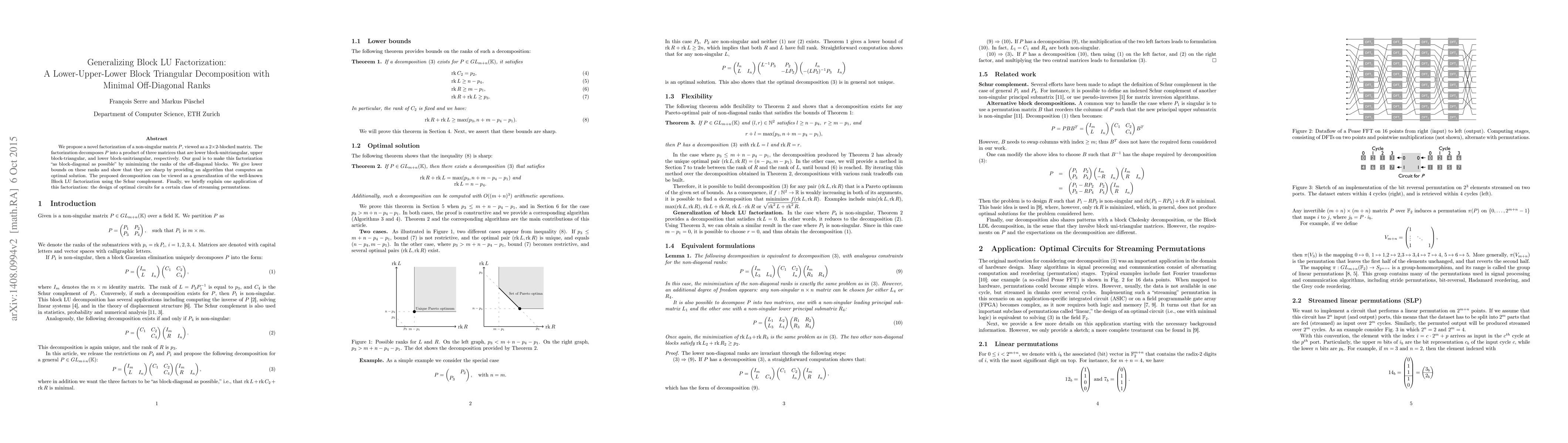 We propose a novel factorization of a non-singular matrix $P$, viewed as a $2\times 2$-blocked matrix. The factorization decomposes $P$ into a product of three matrices that are lower block-unitriangular, upper block-triangular, and lower block-unitriangular, respectively. Our goal is to make this factorization "as block-diagonal as possible" by minimizing the ranks of the off-diagonal blocks. We give lower bounds on these ranks and show that they are sharp by providing an algorithm that computes an optimal solution. The proposed decomposition can be viewed as a generalization of the well-known Block LU factorization using the Schur complement.