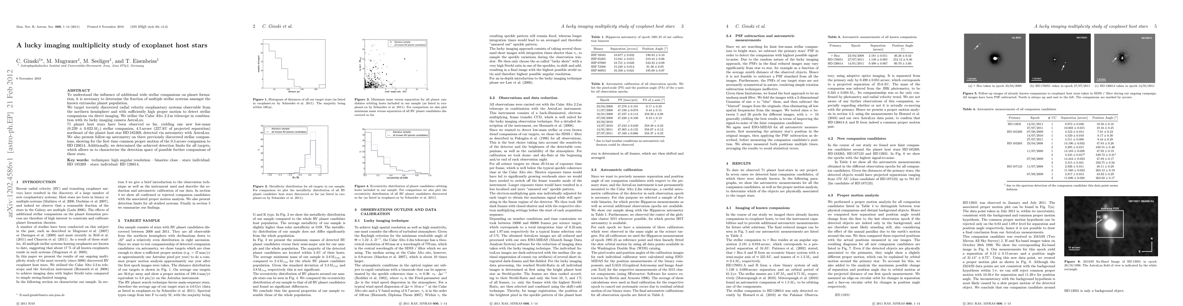 This study uses lucky imaging to investigate the multiplicity of exoplanet host stars, finding one new low-mass stellar companion to HD185269 and confirming the common proper motion of a companion to HD126614, while also establishing detection limits for further companion searches.