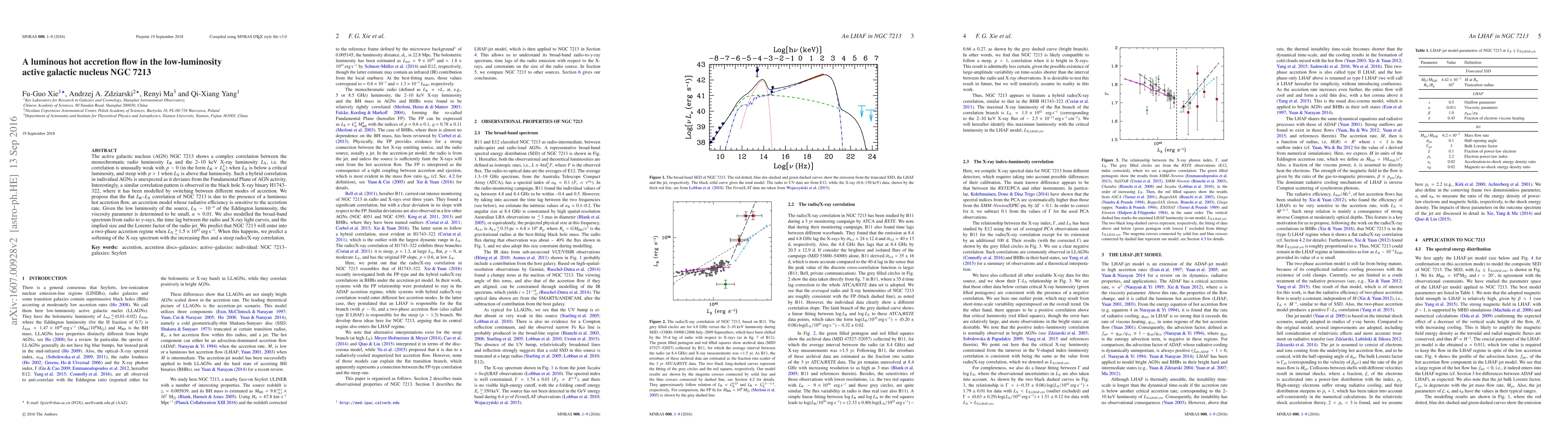 This paper investigates the unusual correlation between radio and X-ray luminosities in the low-luminosity AGN NGC 7213, proposing a luminous hot accretion flow as the cause for the weak correlation. It predicts a transition to a two-phase accretion regime at higher X-ray luminosities.