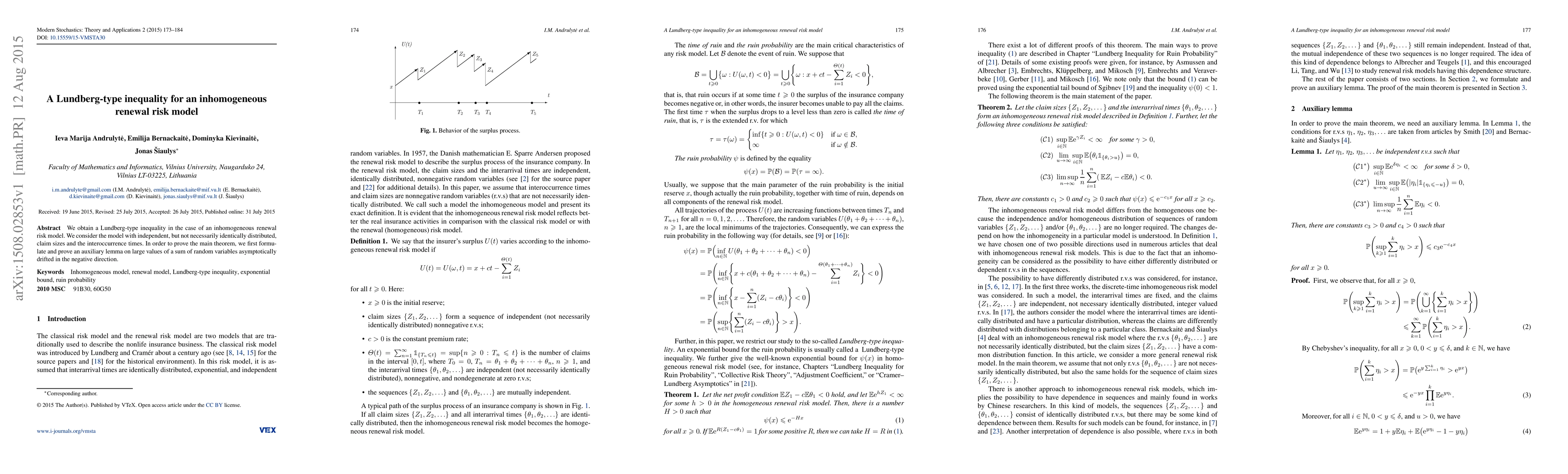 Researchers develop a new inequality for predicting outcomes in an insurance risk model with varying claim sizes and interoccurrence times. This innovation helps improve accuracy in assessing risks and could have significant implications for the insurance industry.