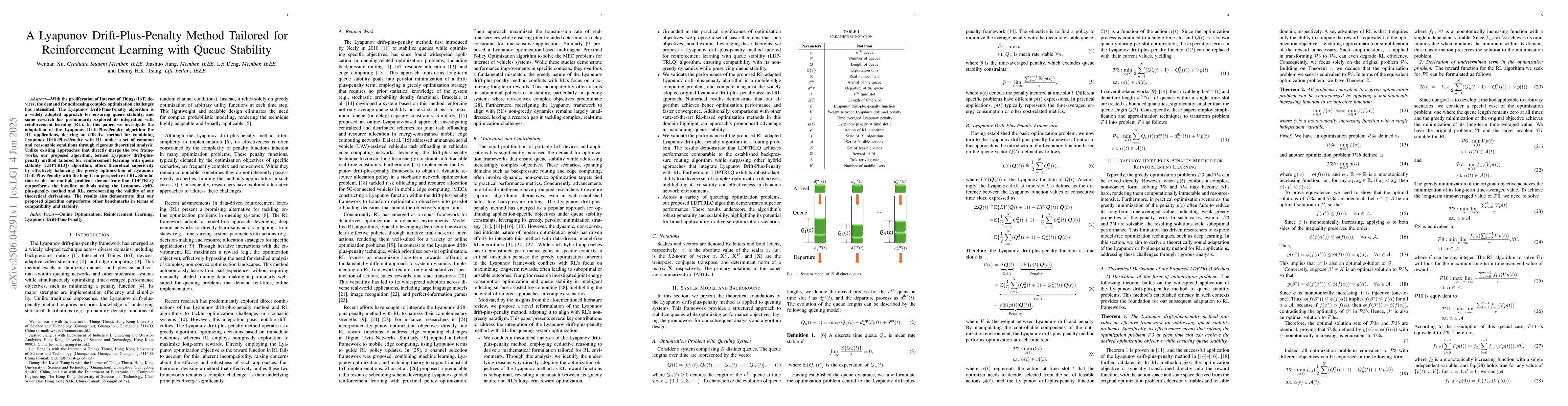 A new method combines Lyapunov Drift-Plus-Penalty for queue stability with reinforcement learning to balance short-term optimization with long-term perspective, achieving superior performance in simulations.
