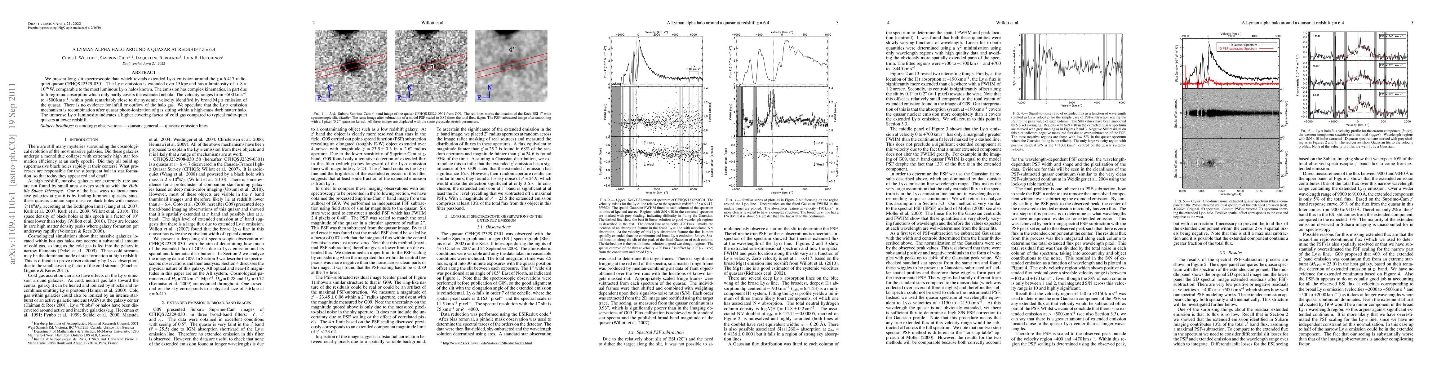 This paper reports extended Lyman alpha emission around a z=6.4 quasar, suggesting a complex, recombination-driven halo with high luminosity and no gas inflow or outflow, indicating a higher covering factor of cold gas than typical lower redshift quasars.