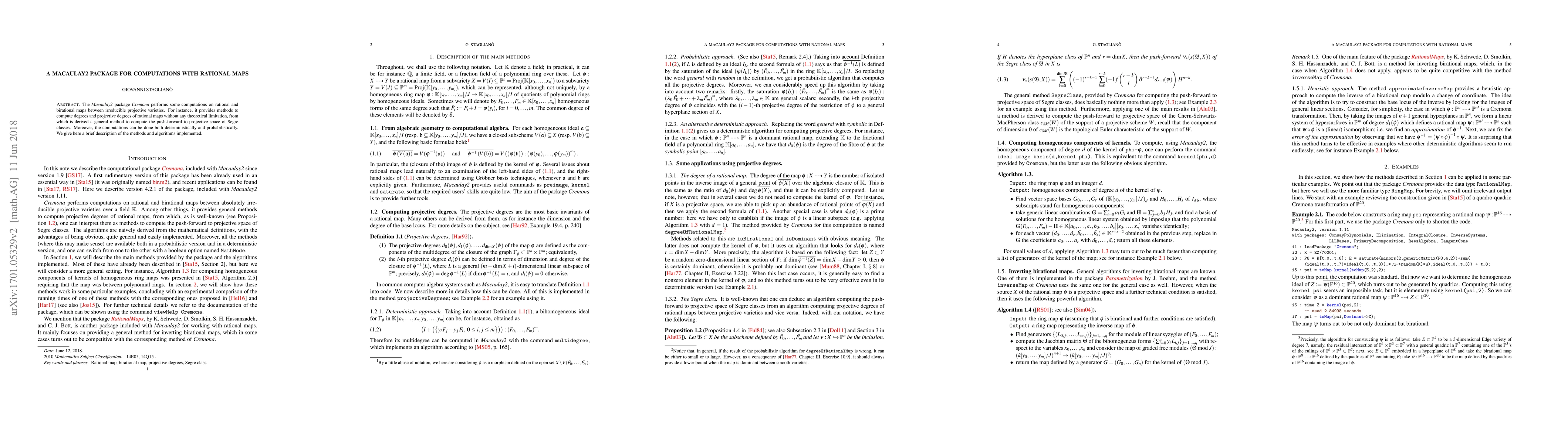 The Cremona package in Macaulay2 facilitates computations for rational and birational maps between projective varieties, offering methods to determine degrees and projective degrees, and enabling the computation of Segre classes' push-forwards to projective space, with both deterministic and probabilistic options.