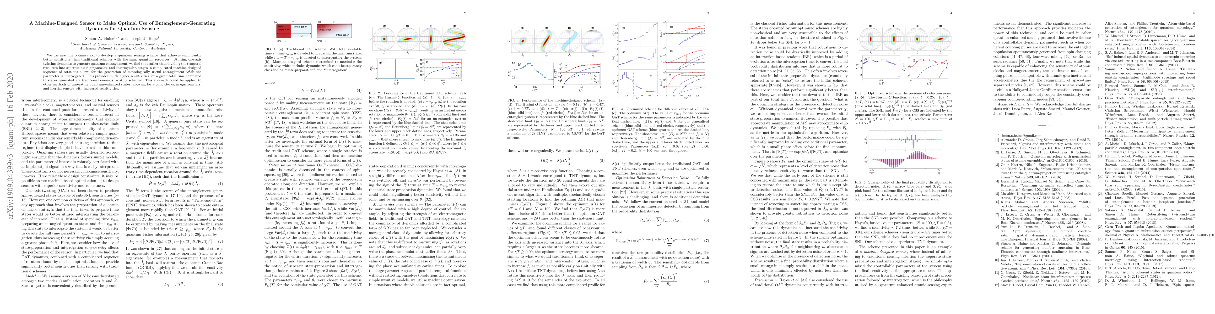 We use machine optimisation to develop a quantum sensing scheme that achieves significantly better sensitivity than traditional schemes with the same quantum resources. Utilising one-axis twisting dynamics to generate quantum entanglement, we find that rather than dividing the temporal resources into seperate "state-preparation" and "interrogation" stages, a complicated machine-designed sequence of rotations allows for the generation of metrologically useful entanglement while the parameter is interrogated. This provides much higher sensitivities for a given total time compared to states generated via traditional one-axis twisting schemes. This approach could be applied to other methods of generating quantum-enhanced states, allowing for atomic clocks, magnetometers, and inertial sensors with increased sensitivities.