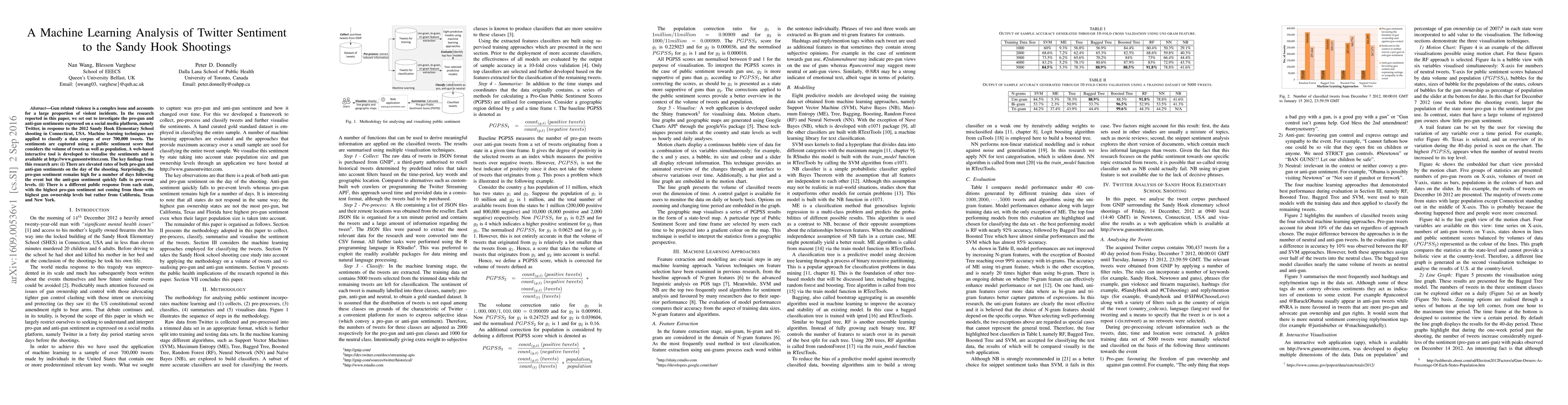Gun related violence is a complex issue and accounts for a large proportion of violent incidents. In the research reported in this paper, we set out to investigate the pro-gun and anti-gun sentiments expressed on a social media platform, namely Twitter, in response to the 2012 Sandy Hook Elementary School shooting in Connecticut, USA. Machine learning techniques are applied to classify a data corpus of over 700,000 tweets. The sentiments are captured using a public sentiment score that considers the volume of tweets as well as population. A web-based interactive tool is developed to visualise the sentiments and is available at http://www.gunsontwitter.com. The key findings from this research are: (i) There are elevated rates of both pro-gun and anti-gun sentiments on the day of the shooting. Surprisingly, the pro-gun sentiment remains high for a number of days following the event but the anti-gun sentiment quickly falls to pre-event levels. (ii) There is a different public response from each state, with the highest pro-gun sentiment not coming from those with highest gun ownership levels but rather from California, Texas and New York.
