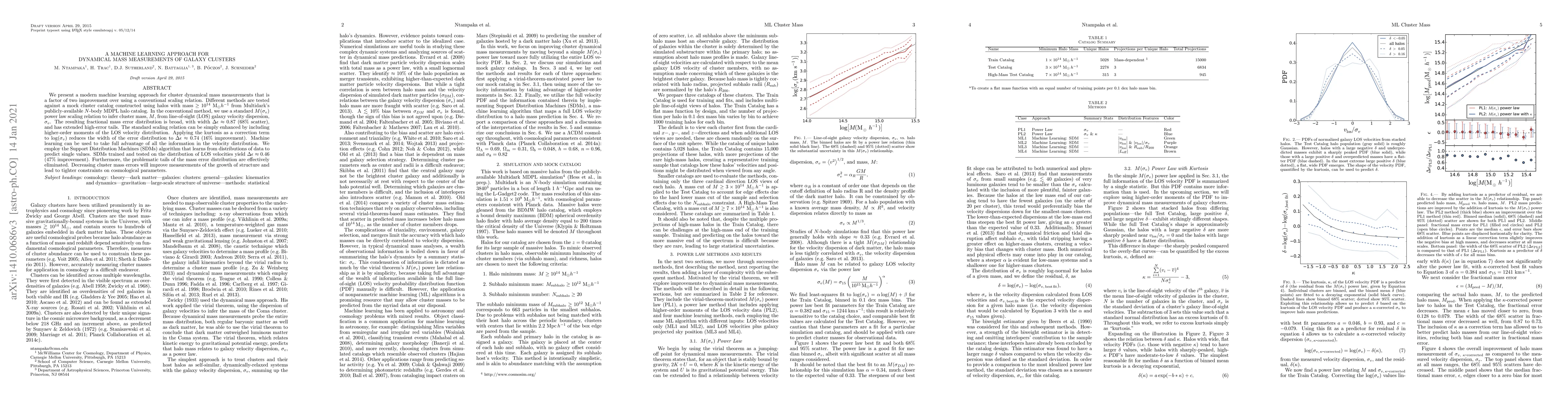 We present a modern machine learning approach for cluster dynamical mass measurements that is a factor of two improvement over using a conventional scaling relation. Different methods are tested against a mock cluster catalog constructed using halos with mass >= 10^14 Msolar/h from Multidark's publicly-available N-body MDPL halo catalog. In the conventional method, we use a standard M(sigma_v) power law scaling relation to infer cluster mass, M, from line-of-sight (LOS) galaxy velocity dispersion, sigma_v. The resulting fractional mass error distribution is broad, with width=0.87 (68% scatter), and has extended high-error tails. The standard scaling relation can be simply enhanced by including higher-order moments of the LOS velocity distribution. Applying the kurtosis as a correction term to log(sigma_v) reduces the width of the error distribution to 0.74 (16% improvement). Machine learning can be used to take full advantage of all the information in the velocity distribution. We employ the Support Distribution Machines (SDMs) algorithm that learns from distributions of data to predict single values. SDMs trained and tested on the distribution of LOS velocities yield width=0.46 (47% improvement). Furthermore, the problematic tails of the mass error distribution are effectively eliminated. Decreasing cluster mass errors will improve measurements of the growth of structure and lead to tighter constraints on cosmological parameters.