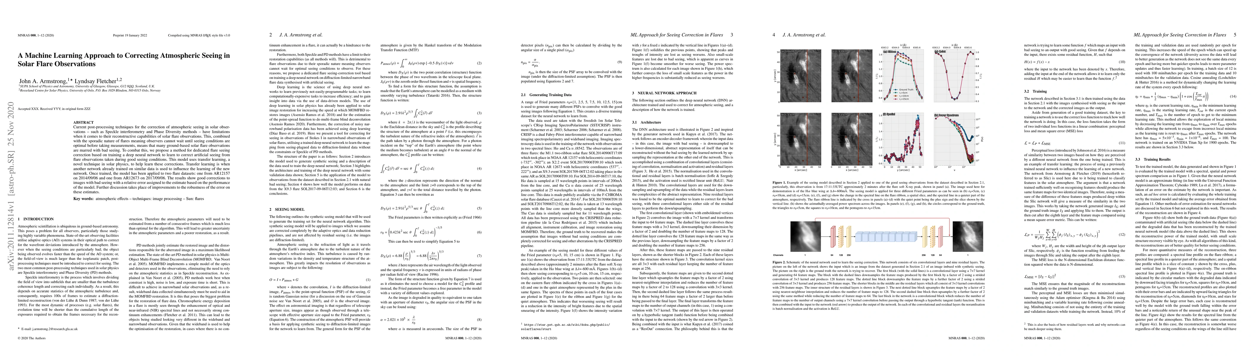 Current post-processing techniques for the correction of atmospheric seeing in solar observations -- such as Speckle interferometry and Phase Diversity methods -- have limitations when it comes to their reconstructive capabilities of solar flare observations. This, combined with the sporadic nature of flares meaning observers cannot wait until seeing conditions are optimal before taking measurements, means that many ground-based solar flare observations are marred with bad seeing. To combat this, we propose a method for dedicated flare seeing correction based on training a deep neural network to learn to correct artificial seeing from flare observations taken during good seeing conditions. This model uses transfer learning, a novel technique in solar physics, to help learn these corrections. Transfer learning is when another network already trained on similar data is used to influence the learning of the new network. Once trained, the model has been applied to two flare datasets: one from AR12157 on 2014/09/06 and one from AR12673 on 2017/09/06. The results show good corrections to images with bad seeing with a relative error assigned to the estimate based on the performance of the model. Further discussion takes place of improvements to the robustness of the error on these estimates.