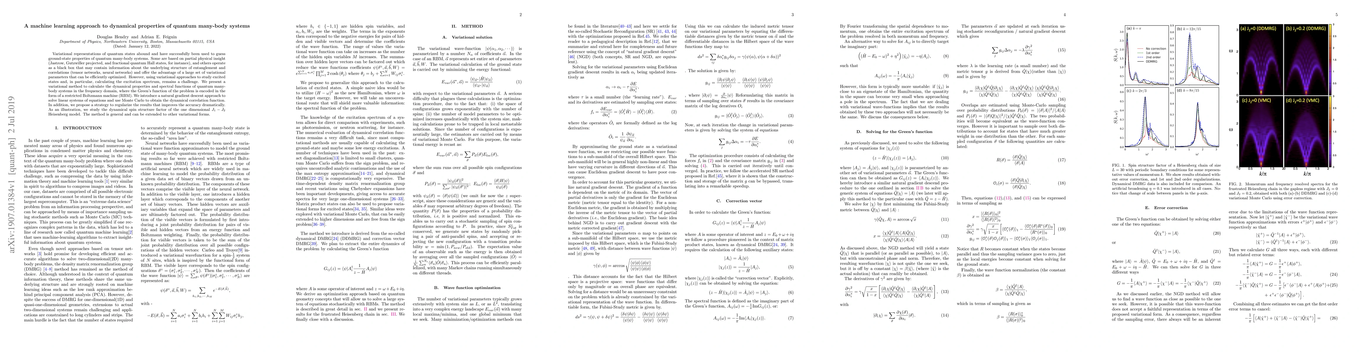 Variational representations of quantum states abound and have successfully been used to guess ground-state properties of quantum many-body systems. Some are based on partial physical insight (Jastrow, Gutzwiller projected, and fractional quantum Hall states, for instance), and others operate as a black box that may contain information about the underlying structure of entanglement and correlations (tensor networks, neural networks) and offer the advantage of a large set of variational parameters that can be efficiently optimized. However, using variational approaches to study excited states and, in particular, calculating the excitation spectrum, remains a challenge. We present a variational method to calculate the dynamical properties and spectral functions of quantum many-body systems in the frequency domain, where the Green's function of the problem is encoded in the form of a restricted Boltzmann machine (RBM). We introduce a natural gradient descent approach to solve linear systems of equations and use Monte Carlo to obtain the dynamical correlation function. In addition, we propose a strategy to regularize the results that improves the accuracy dramatically. As an illustration, we study the dynamical spin structure factor of the one dimensional $J_1-J_2$ Heisenberg model. The method is general and can be extended to other variational forms.