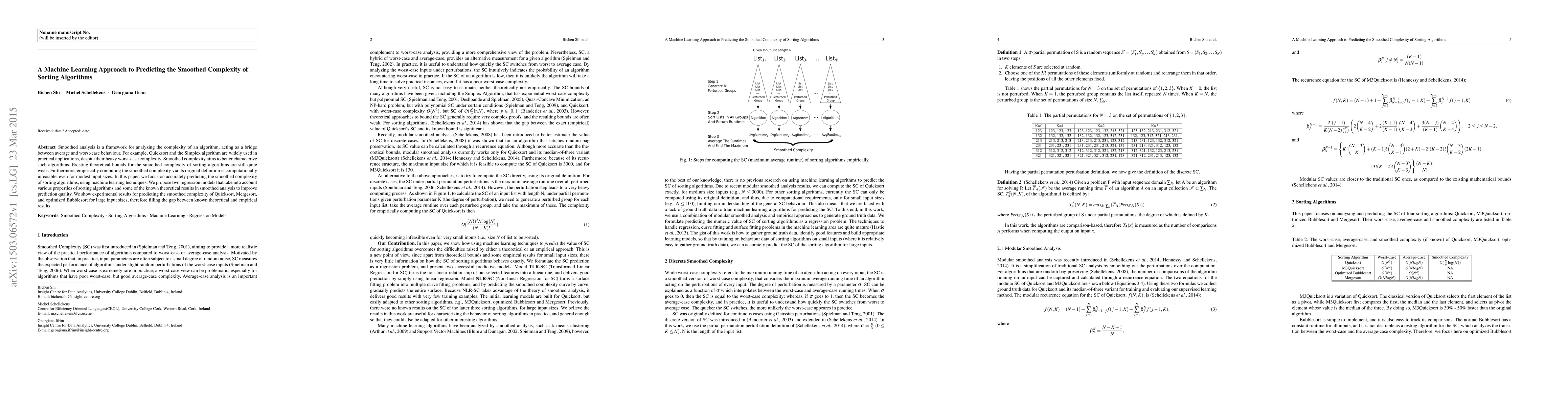 This paper employs machine learning to predict the smoothed complexity of sorting algorithms like Quicksort, Mergesort, and optimized Bubblesort, aiming to bridge the gap between weak theoretical bounds and computationally infeasible empirical computations. The study introduces two regression models that enhance prediction accuracy by incorporating algorithm properties and known theoretical insights.