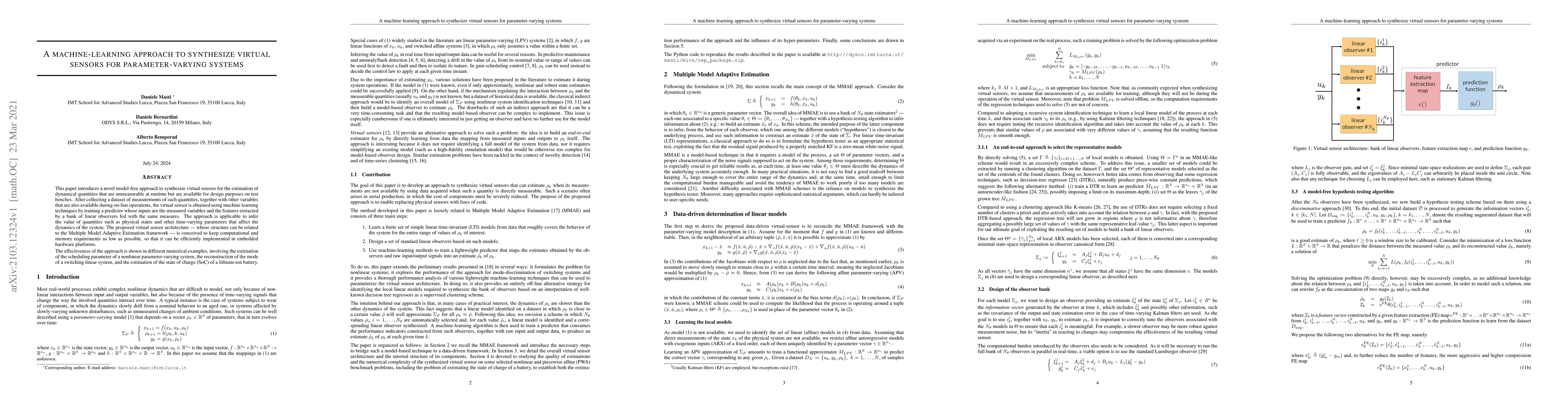 This paper introduces a novel model-free approach to synthesize virtual sensors for the estimation of dynamical quantities that are unmeasurable at runtime but are available for design purposes on test benches. After collecting a dataset of measurements of such quantities, together with other variables that are also available during on-line operations, the virtual sensor is obtained using machine learning techniques by training a predictor whose inputs are the measured variables and the features extracted by a bank of linear observers fed with the same measures. The approach is applicable to infer the value of quantities such as physical states and other time-varying parameters that affect the dynamics of the system. The proposed virtual sensor architecture - whose structure can be related to the Multiple Model Adaptive Estimation framework - is conceived to keep computational and memory requirements as low as possible, so that it can be efficiently implemented in embedded hardware platforms. The effectiveness of the approach is shown in different numerical examples, involving the estimation of the scheduling parameter of a nonlinear parameter-varying system, the reconstruction of the mode of a switching linear system, and the estimation of the state of charge (SoC) of a lithium-ion battery.
