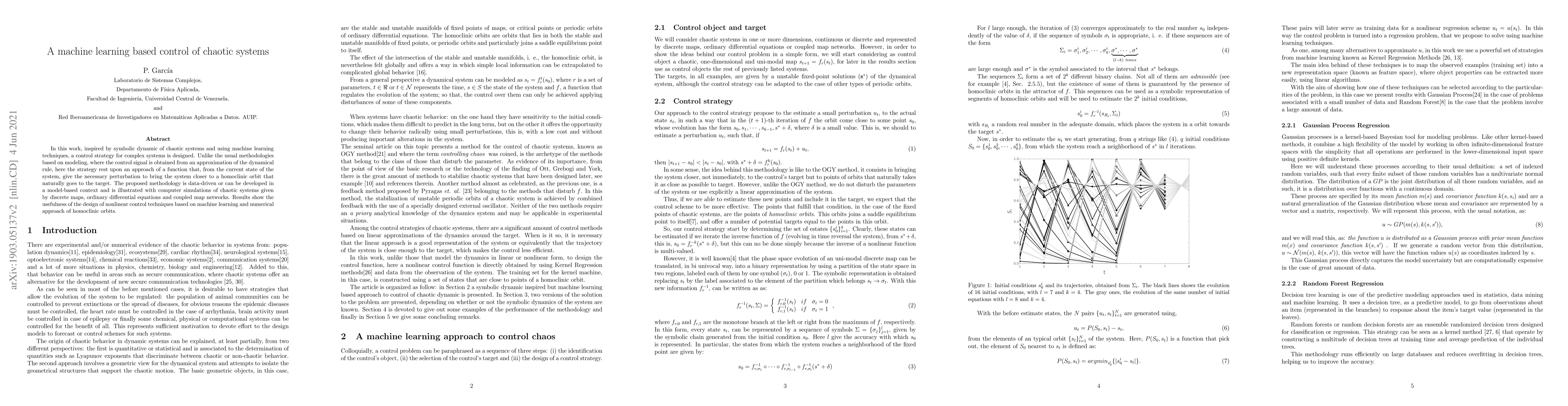 The paper presents a machine learning-based control strategy for complex systems, utilizing regression techniques (Gaussian Processes and Random Forests) to approximate control functions directly from observed system states.