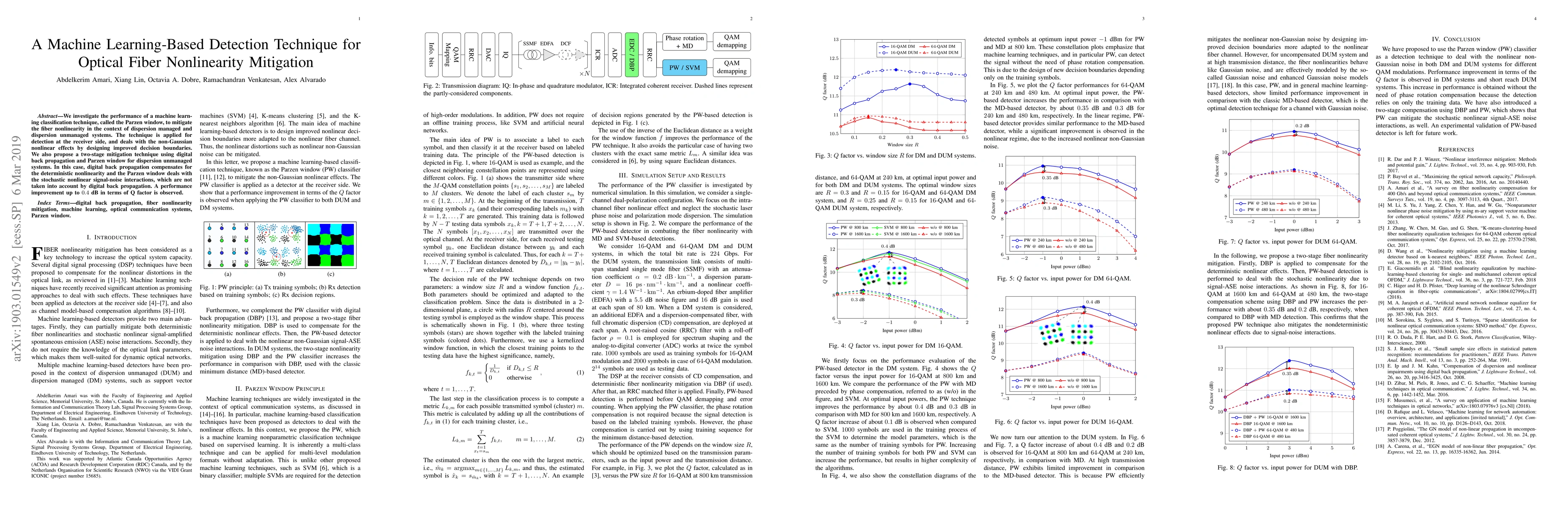 A machine learning technique using Parzen windows improves fiber nonlinearity mitigation, achieving up to 0.4 dB Q factor improvement in dispersion unmanaged systems.