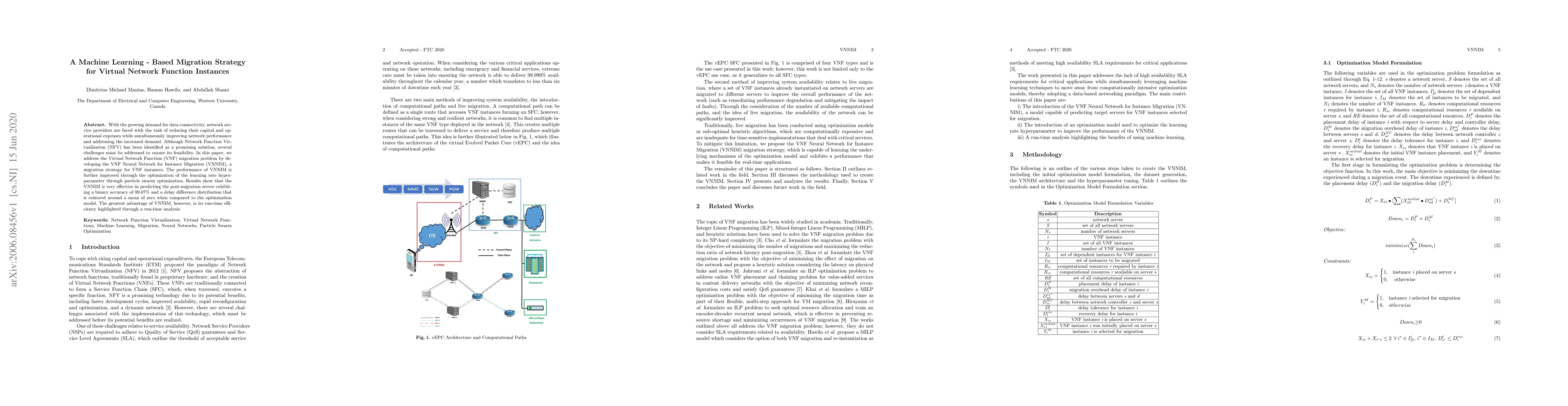 This paper proposes VNF Neural Network for Instance Migration (VNNIM) to optimize Virtual Network Function (VNF) migration, achieving 99.07% binary accuracy. The learning rate is optimized using particle swarm optimization, demonstrating VNNIM's effectiveness in predicting post-migration performance and run-time efficiency.
