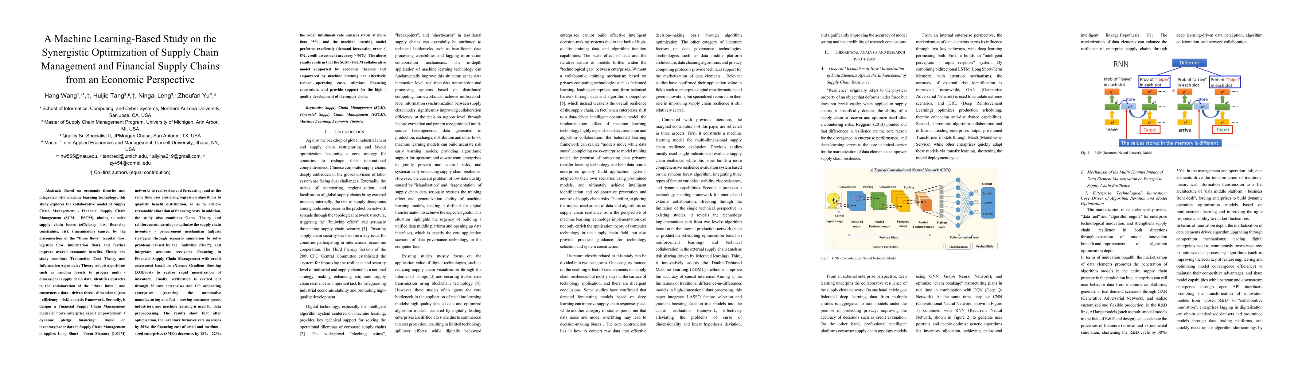 Based on economic theories and integrated with machine learning technology, this study explores a collaborative Supply Chain Management and Financial Supply Chain Management (SCM - FSCM) model to solve issues like efficiency loss, financing constraints, and risk transmission. We combine Transaction Cost and Information Asymmetry theories and use algorithms such as random forests to process multi-dimensional data and build a data-driven, three-dimensional (cost-efficiency-risk) analysis framework. We then apply an FSCM model of "core enterprise credit empowerment plus dynamic pledge financing." We use Long Short-Term Memory (LSTM) networks for demand forecasting and clustering/regression algorithms for benefit allocation. The study also combines Game Theory and reinforcement learning to optimize the inventory-procurement mechanism and uses eXtreme Gradient Boosting (XGBoost) for credit assessment to enable rapid monetization of inventory. Verified with 20 core and 100 supporting enterprises, the results show a 30\% increase in inventory turnover, an 18\%-22\% decrease in SME financing costs, a stable order fulfillment rate above 95\%, and excellent model performance (demand forecasting error <= 8\%, credit assessment accuracy >= 90\%). This SCM-FSCM model effectively reduces operating costs, alleviates financing constraints, and supports high-quality supply chain development.
