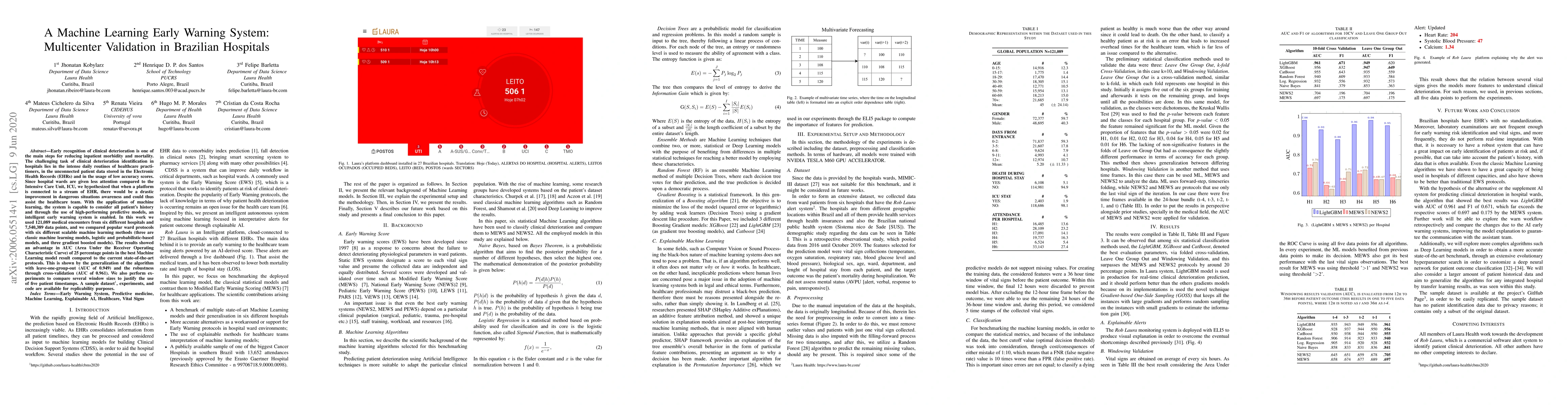 This paper presents a machine learning early warning system validated across six Brazilian hospitals, showing a 25% improvement in predictive accuracy over existing protocols. The system leverages patient data from Electronic Health Records and outperforms traditional methods using gradient boosted models.