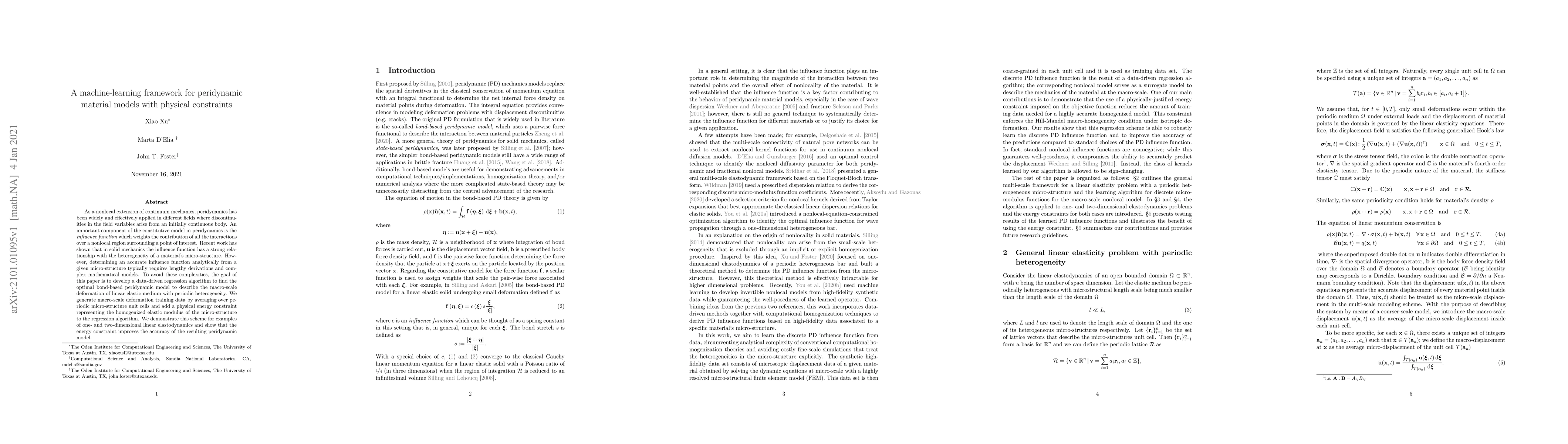 A data-driven regression algorithm is developed to find optimal peridynamic models for linear elastic media with periodic heterogeneity, improving accuracy with added physical energy constraints.