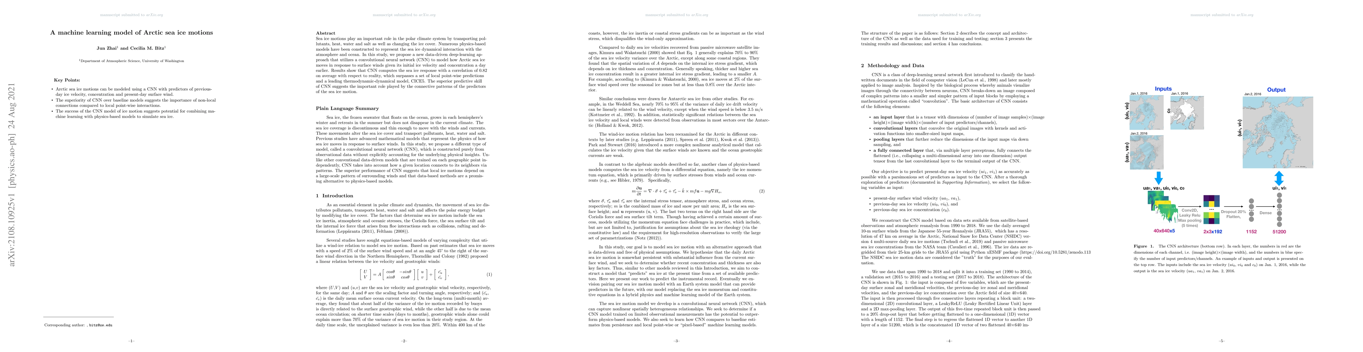 This study introduces a convolutional neural network (CNN) model to predict Arctic sea ice motions based on surface winds, achieving an 0.82 correlation with actual observations. The CNN outperforms existing physics-based models, highlighting the value of data-driven approaches in understanding sea ice dynamics.