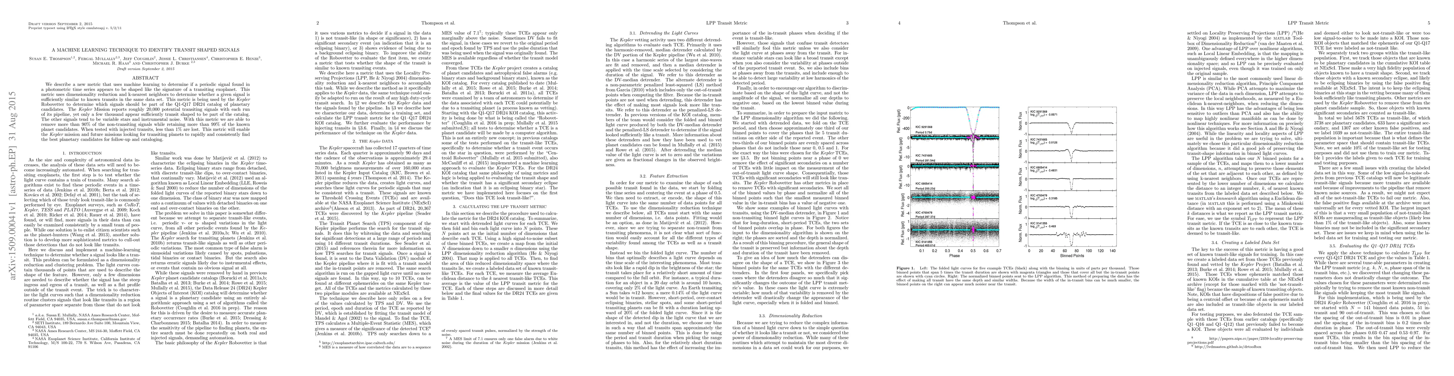 We describe a new metric that uses machine learning to determine if a periodic signal found in a photometric time series appears to be shaped like the signature of a transiting exoplanet. This metric uses dimensionality reduction and k-nearest neighbors to determine whether a given signal is sufficiently similar to known transits in the same data set. This metric is being used by the Kepler Robovetter to determine which signals should be part of the Q1-Q17 DR24 catalog of planetary candidates. The Kepler Mission reports roughly 20,000 potential transiting signals with each run of its pipeline, yet only a few thousand appear sufficiently transit shaped to be part of the catalog. The other signals tend to be variable stars and instrumental noise. With this metric we are able to remove more than 90% of the non-transiting signals while retaining more than 99% of the known planet candidates. When tested with injected transits, less than 1% are lost. This metric will enable the Kepler mission and future missions looking for transiting planets to rapidly and consistently find the best planetary candidates for follow-up and cataloging.