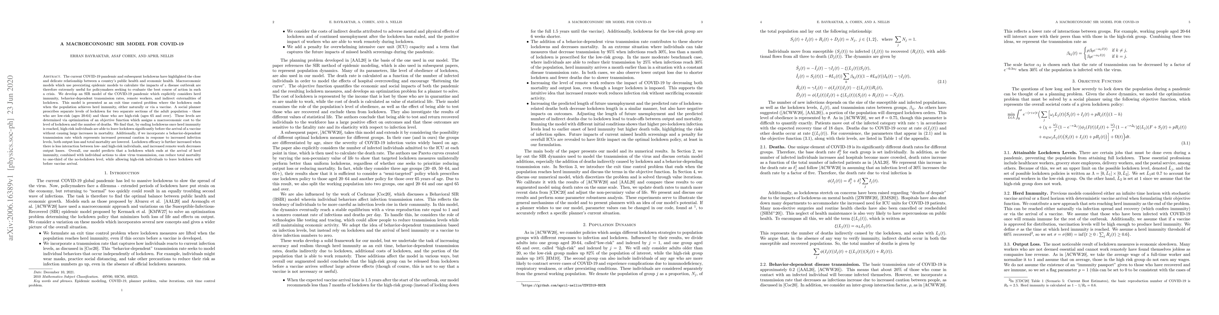 The current COVID-19 pandemic and subsequent lockdowns have highlighted the close and delicate relationship between a country's public health and economic health. Macroeconomic models that use preexisting epidemic models to calculate the impacts of a disease outbreak are therefore extremely useful for policymakers seeking to evaluate the best course of action in such a crisis. We develop an SIR model of the COVID-19 pandemic that explicitly considers herd immunity, behavior-dependent transmission rates, remote workers, and indirect externalities of lockdown. This model is presented as an exit time control problem where lockdown ends when the population achieves herd immunity, either naturally or via a vaccine. A social planner prescribes separate levels of lockdown for two separate sections of the adult population: low-risk (ages 20-64) and high-risk (ages 65 and over). These levels are determined via optimization of an objective function which assigns a macroeconomic cost to the level of lockdown and the number of deaths. We find that, by ending lockdowns once herd immunity is reached, high-risk individuals are able to leave lockdown significantly before the arrival of a vaccine without causing large increases in mortality. Moreover, if we incorporate a behavior-dependent transmission rate which represents increased personal caution in response to increased infection levels, both output loss and total mortality are lowered. Lockdown efficacy is further increased when there is less interaction between low- and high-risk individuals, and increased remote work decreases output losses. Overall, our model predicts that a lockdown which ends at the arrival of herd immunity, combined with individual actions to slow virus transmission, can reduce total mortality to one-third of the no-lockdown level, while allowing high-risk individuals to leave lockdown well before vaccine arrival.