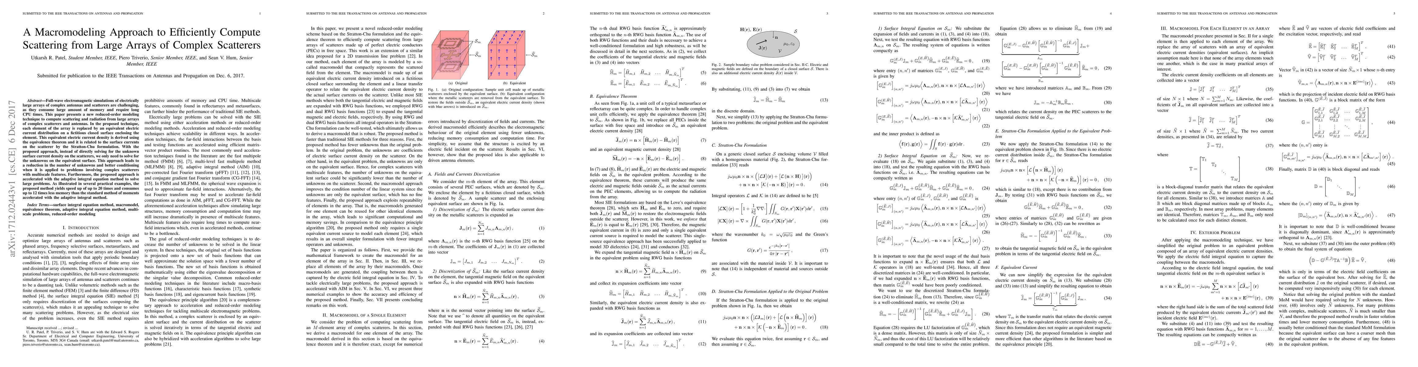 A new approach to computing electromagnetic scattering from large arrays of complex scatterers reduces memory consumption and CPU time, achieving speedups of up to 20 times.