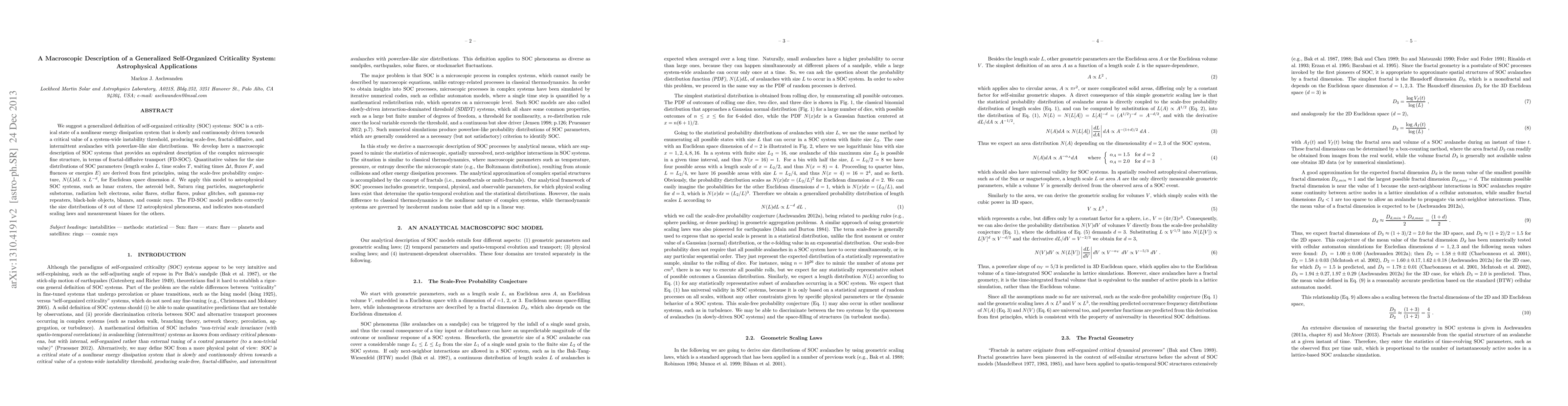 We suggest a generalized definition of self-organized criticality (SOC) systems: SOC is a critical state of a nonlinear energy dissipation system that is slowly and continuously driven towards a critical value of a system-wide instability threshold, producing scale-free, fractal-diffusive, and intermittent avalanches with powerlaw-like size distributions. We develop here a macroscopic description of SOC systems that provides an equivalent description of the complex microscopic fine structure, in terms of fractal-diffusive transport (FD-SOC). Quantitative values for the size distributions of SOC parameters (length scales $L$, time scales $T$, waiting times $\Delta t$, fluxes $F$, and energies $E$) are derived from first principles, using the scale-free probability conjecture, $N(L) dL \propto L^{-d}$, for Euclidean space dimension $d$. We apply this model to astrophysical SOC systems, such as lunar craters, the asteroid belt, Saturn ring particles, magnetospheric substorms, radiation belt electrons, solar flares, stellar flares, pulsar glitches, soft gamma-ray repeaters, black-hole objects, blazars, and cosmic rays. The FD-SOC model predicts correctly the size distributions of 8 out of these 12 astrophysical phenomena, and indicates non-standard scaling laws and measurement biases for the others.
