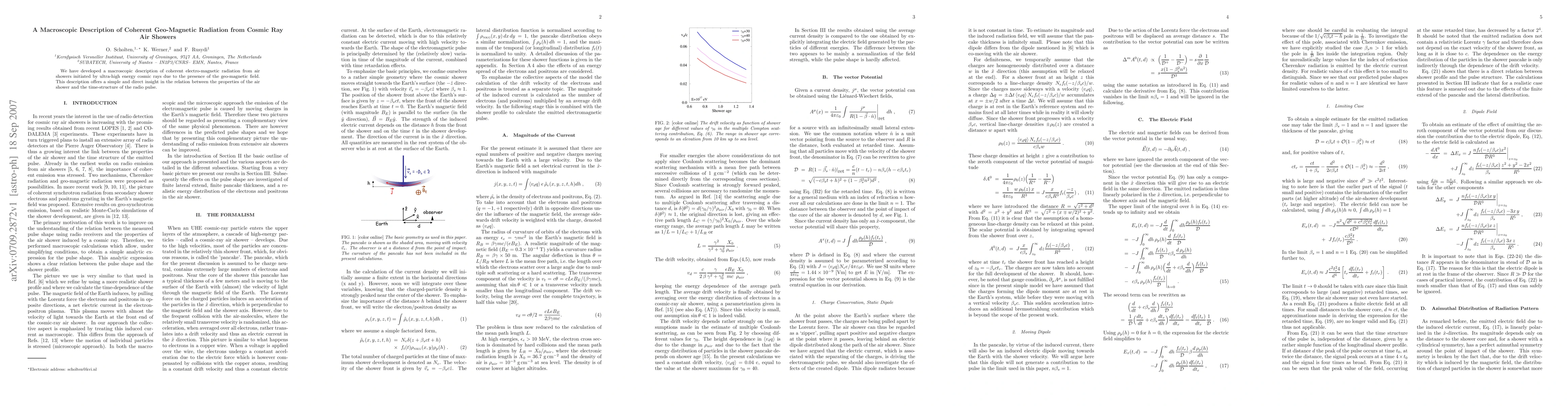 We have developed a macroscopic description of coherent electro-magnetic radiation from air showers initiated by ultra-high energy cosmic rays due to the presence of the geo-magnetic field. This description offers a simple and direct insight in the relation between the properties of the air shower and the time-structure of the radio pulse.
