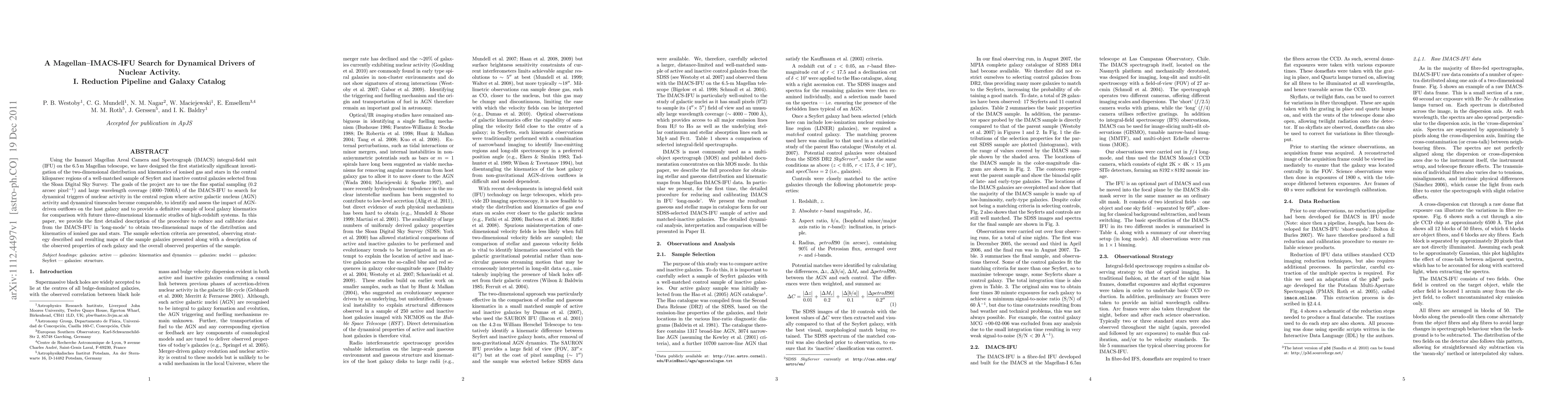 Using the Inamori Magellan Areal Camera and Spectrograph (IMACS) integral-field unit (IFU) on the 6.5m Magellan telescope, we have designed the first statistically significant investigation of the two-dimensional distribution and kinematics of ionized gas and stars in the central kiloparsec regions of a well-matched sample of Seyfert and inactive control galaxies selected from the Sloan Digital Sky Survey. The goals of the project are to use the fine spatial sampling (0.2 arcsec/pixel) and large wavelength coverage (4000-7000A) of the IMACS-IFU to search for dynamical triggers of nuclear activity in the central region where active galactic nucleus (AGN) activity and dynamical timescales become comparable, to identify and assess the impact of AGN-driven outflows on the host galaxy and to provide a definitive sample of local galaxy kinematics for comparison with future three-dimensional kinematic studies of high-redshift systems. In this paper, we provide the first detailed description of the procedure to reduce and calibrate data from the IMACS-IFU in `long mode' to obtain two-dimensional maps of the distribution and kinematics of ionized gas and stars. The sample selection criteria are presented, observing strategy described and resulting maps of the sample galaxies presented along with a description of the observed properties of each galaxy and the overall observed properties of the sample.