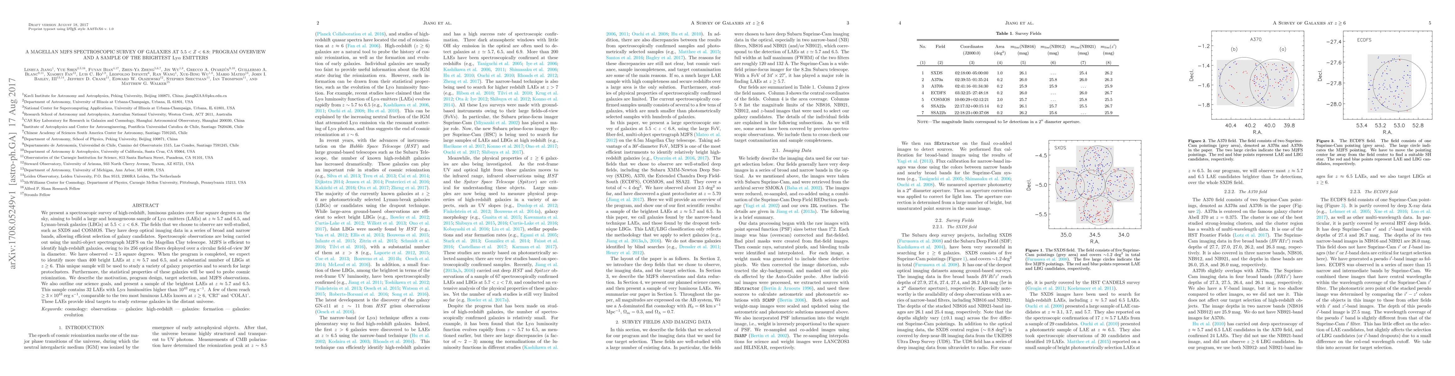 This paper details a spectroscopic survey using the Magellan M2FS spectrograph to identify high-redshift Lyman-alpha emitters and Lyman-break galaxies in well-studied fields. The survey aims to build a large sample of LAEs at $z\approx5.7$ and $6.5$ and LBGs at $5.5<z<6.8$ to study galaxy properties and cosmic reionization.