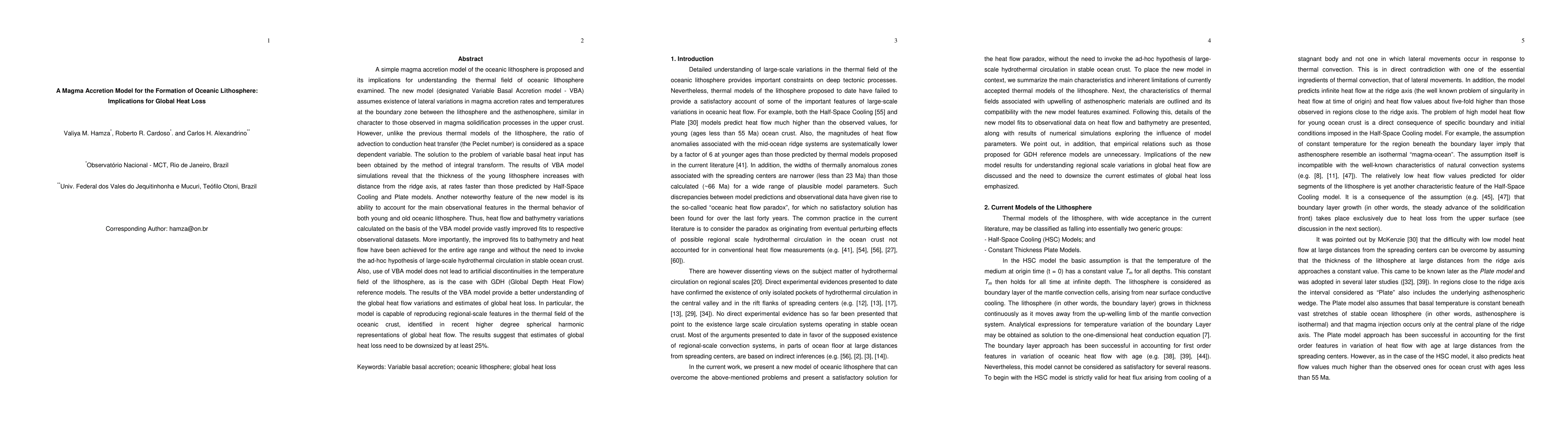 The paper proposes a new magma accretion model for oceanic lithosphere formation, showing improved fits to observational data without requiring large-scale hydrothermal circulation. It suggests global heat loss estimates should be reduced by at least 25%.