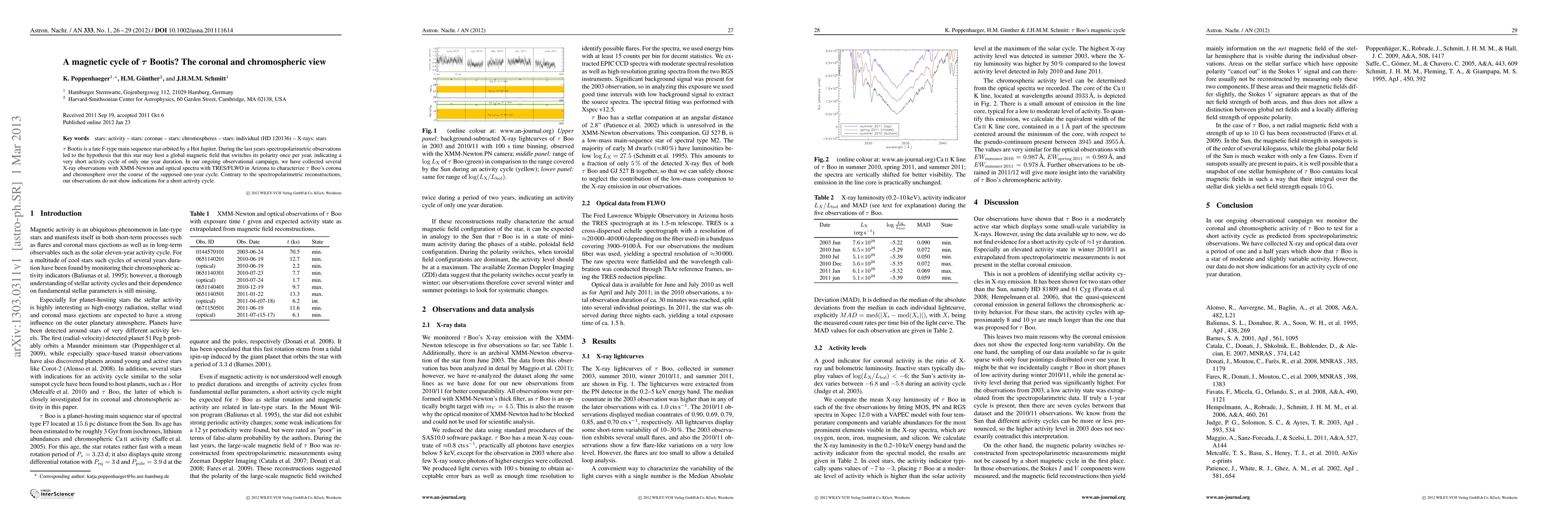 Summary: The study investigates Tau Bootis' magnetic cycle using X-ray and optical spectra, finding no evidence to support a one-year magnetic activity cycle suggested by previous spectropolarimetric observations. This casts doubt on the hypothesis of a rapid magnetic polarity switch in the star.