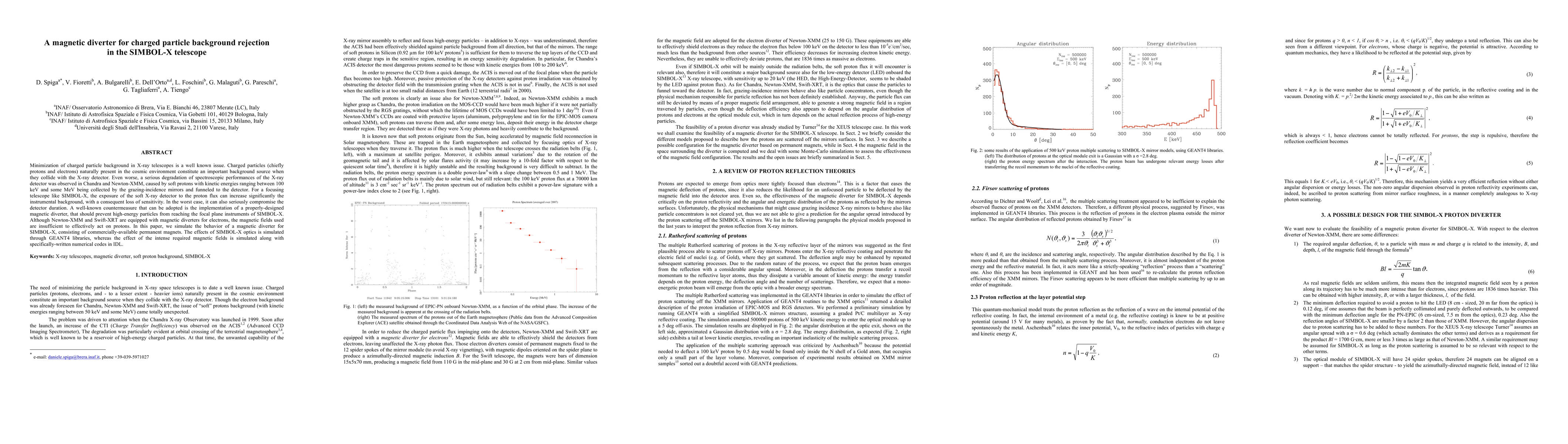 Minimization of charged particle background in X-ray telescopes is a well known issue. Charged particles (chiefly protons and electrons) naturally present in the cosmic environment constitute an important background source when they collide with the X-ray detector. Even worse, a serious degradation of spectroscopic performances of the X-ray detector was observed in Chandra and Newton-XMM, caused by soft protons with kinetic energies ranging between 100 keV and some MeV being collected by the grazing-incidence mirrors and funneled to the detector. For a focusing telescope like SIMBOL-X, the exposure of the soft X-ray detector to the proton flux can increase significantly the instrumental background, with a consequent loss of sensitivity. In the worst case, it can also seriously compromise the detector duration. A well-known countermeasure that can be adopted is the implementation of a properly-designed magnetic diverter, that should prevent high-energy particles from reaching the focal plane instruments of SIMBOL-X. Although Newton-XMM and Swift-XRT are equipped with magnetic diverters for electrons, the magnetic fields used are insufficient to effectively act on protons. In this paper, we simulate the behavior of a magnetic diverter for SIMBOL-X, consisting of commercially-available permanent magnets. The effects of SIMBOL-X optics is simulated through GEANT4 libraries, whereas the effect of the intense required magnetic fields is simulated along with specifically-written numerical codes in IDL.