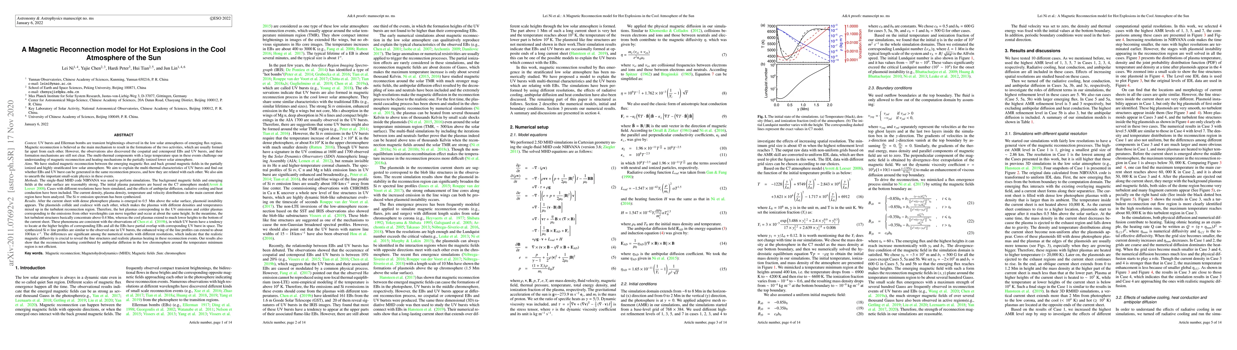 This paper models magnetic reconnection in the cool solar atmosphere, explaining the formation of UV bursts and Ellerman bombs. It finds that plasmoid collisions and coalescence create mixed plasmas at similar heights, consistent with observations, and highlights the importance of realistic magnetic diffusivity in capturing fine structures and heating mechanisms.