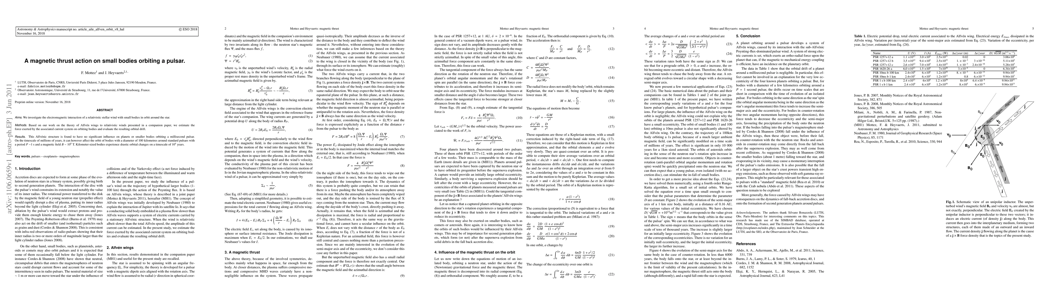 We investigate the electromagnetic interaction of a relativistic stellar wind with small bodies in orbit around the star. Based on our work on the theory of Alfv\'en wings to relativistic winds presented in a companion paper, we estimate the force exerted by the associated current system on orbiting bodies and evaluate the resulting orbital drift. This Alfv\'enic structure is found to have no significant influence on planets or smaller bodies orbiting a millisecond pulsar. %influence on the orbit of bodies around a millisecond pulsar. On the timescale of millions of years, it can however affect the orbit of bodies with a diameter of 100 kilometres around standard pulsars with a period $P \sim $1 s and a magnetic field $B \sim 10^{8}$ T. Kilometer-sized bodies experience drastic orbital changes on a timescale of $10^4$ years.