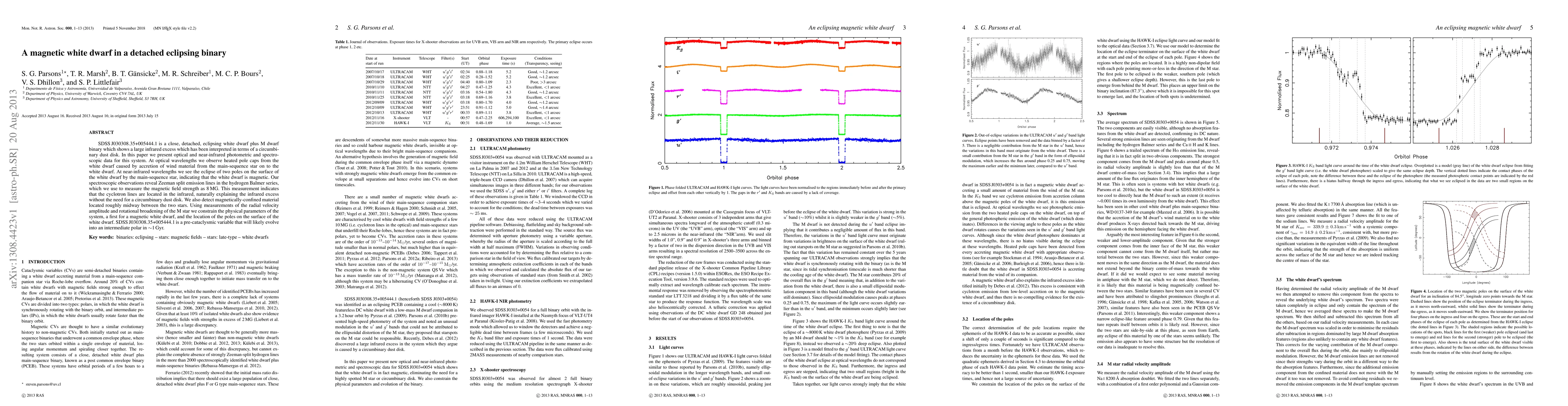 SDSS J030308.35+005444.1 is a close, detached, eclipsing white dwarf plus M dwarf binary which shows a large infrared excess which has been interpreted in terms of a circumbinary dust disk. In this paper we present optical and near-infrared photometric and spectroscopic data for this system. At optical wavelengths we observe heated pole caps from the white dwarf caused by accretion of wind material from the main-sequence star on to the white dwarf. At near-infrared wavelengths we see the eclipse of two poles on the surface of the white dwarf by the main-sequence star, indicating that the white dwarf is magnetic. Our spectroscopic observations reveal Zeeman split emission lines in the hydrogen Balmer series, which we use to measure the magnetic field strength as 8MG. This measurement indicates that the cyclotron lines are located in the infrared, naturally explaining the infrared excess without the need for a circumbinary dust disk. We also detect magnetically-confined material located roughly midway between the two stars. Using measurements of the radial velocity amplitude and rotational broadening of the M star we constrain the physical parameters of the system, a first for a magnetic white dwarf, and the location of the poles on the surface of the white dwarf. SDSS J030308.35+005444.1 is a pre-cataclysmic variable that will likely evolve into an intermediate polar in ~1Gyr.