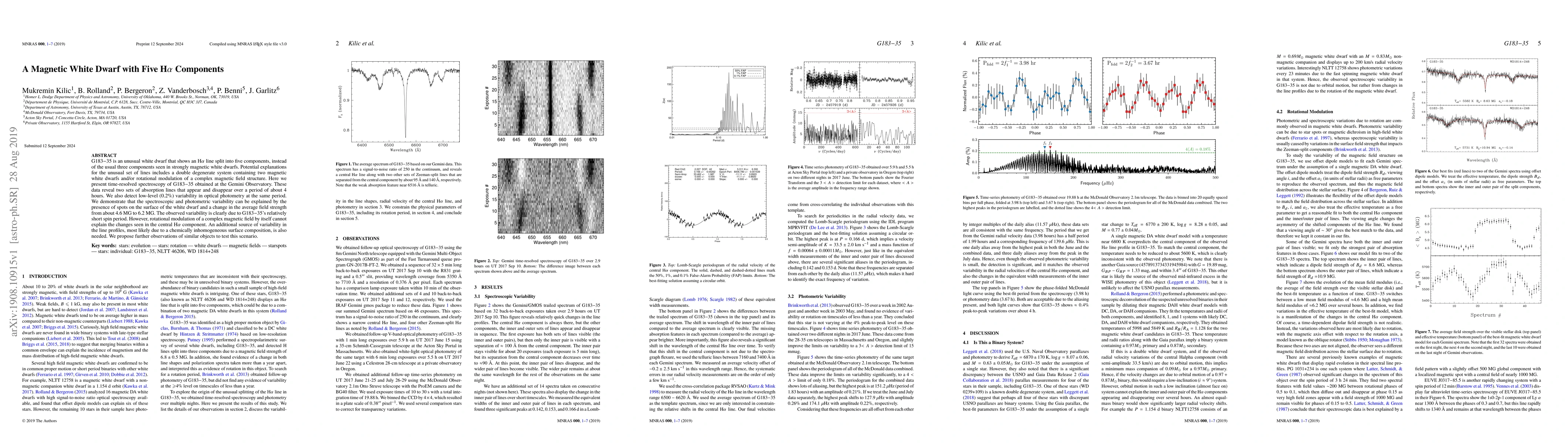 G183$-$35, a magnetic white dwarf, exhibits an unusual H$\alpha$ line split into five components, suggesting complex magnetic field structures or a double degenerate system. Time-resolved spectroscopy reveals periodic spectroscopic and photometric variability, attributed to surface spots and changes in magnetic field strength, indicating a need for further observations to explore chemically inhomogeneous surface compositions.