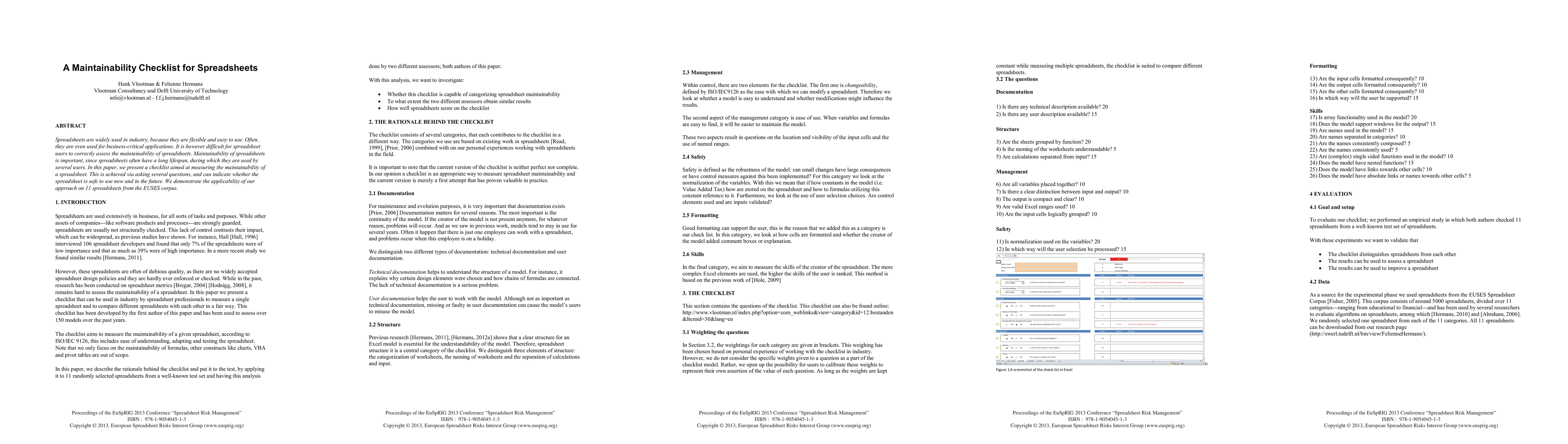 This paper introduces a maintainability checklist for assessing the long-term usability of spreadsheets, providing a set of questions to evaluate their current and future safety. The checklist was tested on 11 spreadsheets from the EUSES corpus to demonstrate its effectiveness.