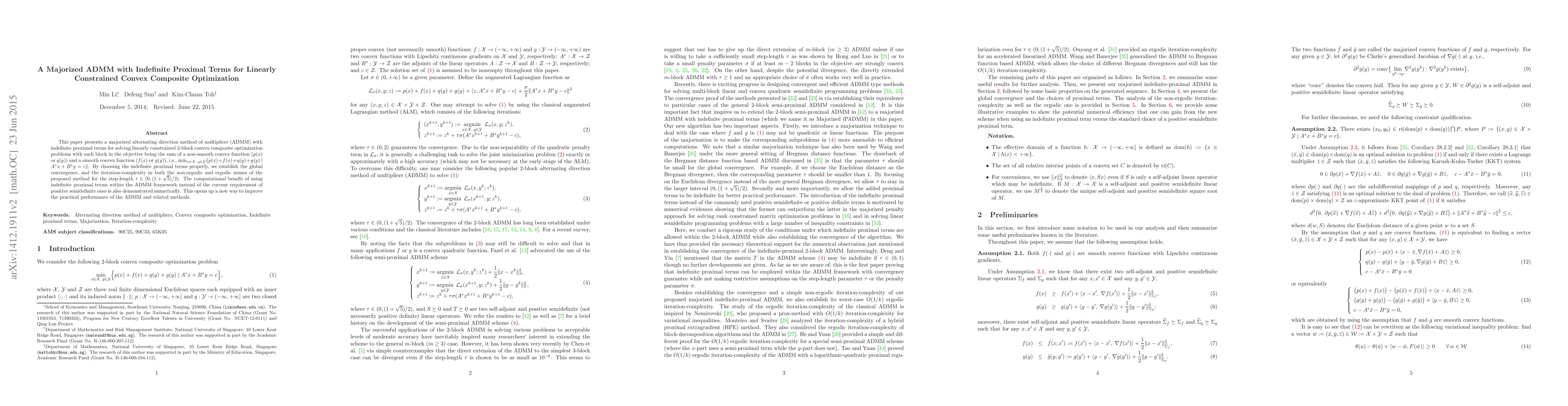 This paper introduces a majorized ADMM with indefinite proximal terms for solving $2$-block convex composite optimization problems, demonstrating global convergence and $O(1/k)$ ergodic iteration-complexity. It shows computational benefits of using indefinite proximal terms over positive semidefinite ones, enhancing the practical performance of ADMM.