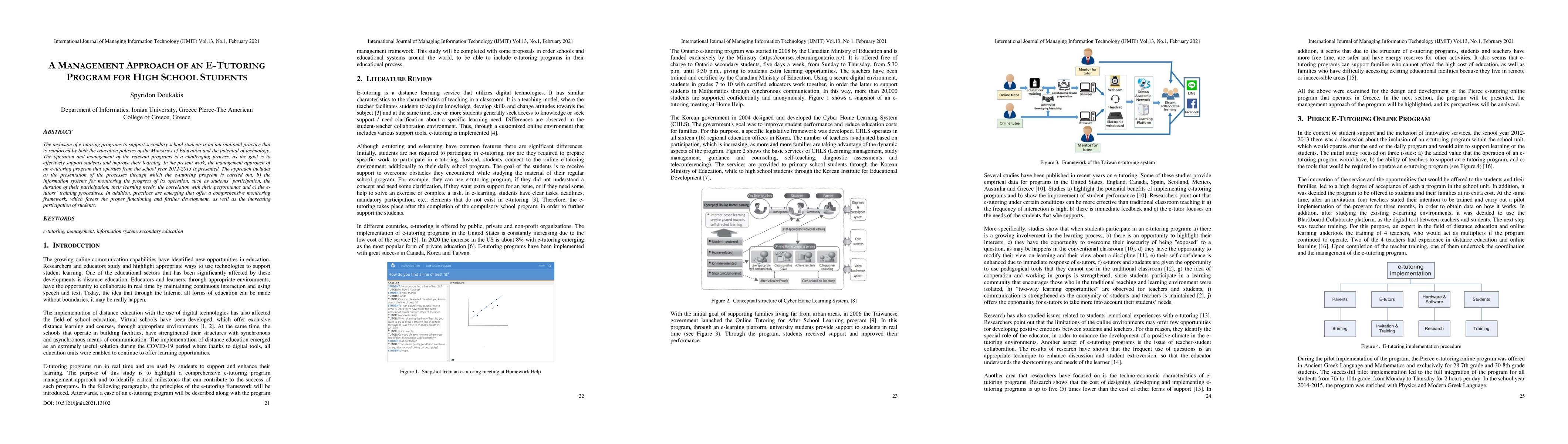 This paper presents a management approach for an e-tutoring program for high school students, focusing on operational processes, monitoring information systems, and etutors' training procedures to enhance student participation and learning outcomes. The approach aims to support effective student learning and improve the program's overall performance.