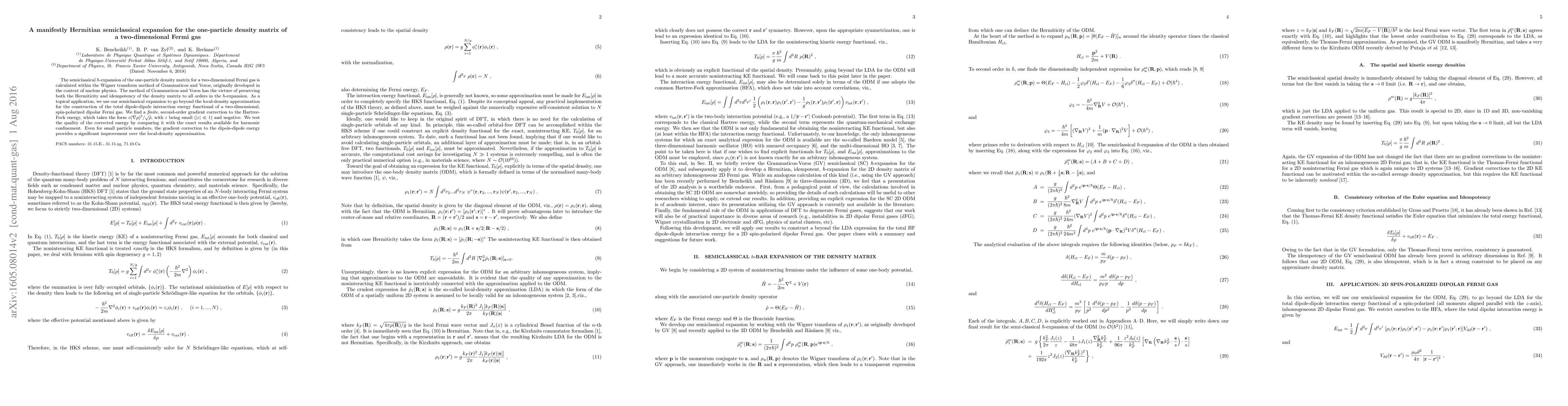 The semiclassical $\hbar$-expansion of the one-particle density matrix for a two-dimensional Fermi gas is calculated within the Wigner transform method of Grammaticos and Voros, originally developed in the context of nuclear physics. The method of Grammaticos and Voros has the virture of preserving both the Hermiticity and idempotency of the density matrix to all orders in the $\hbar$-expansion. As a topical application, we use our semiclassical expansion to go beyond the local-density approximation for the construction of the total dipole-dipole interaction energy functional of a two-dimensional, spin-polarized dipolar Fermi gas. We find a {\em finite}, second-order gradient correction to the Hartree-Fock energy, which takes the form $\varepsilon (\nabla \rho)^2/\sqrt{\rho}$, with $\varepsilon$ being small ($|\varepsilon| \ll1$) and negative. We test the quality of the corrected energy by comparing it with the exact results available for harmonic confinement. Even for small particle numbers, the gradient correction to the dipole-dipole energy provides a significant improvement over the local-density approximation.