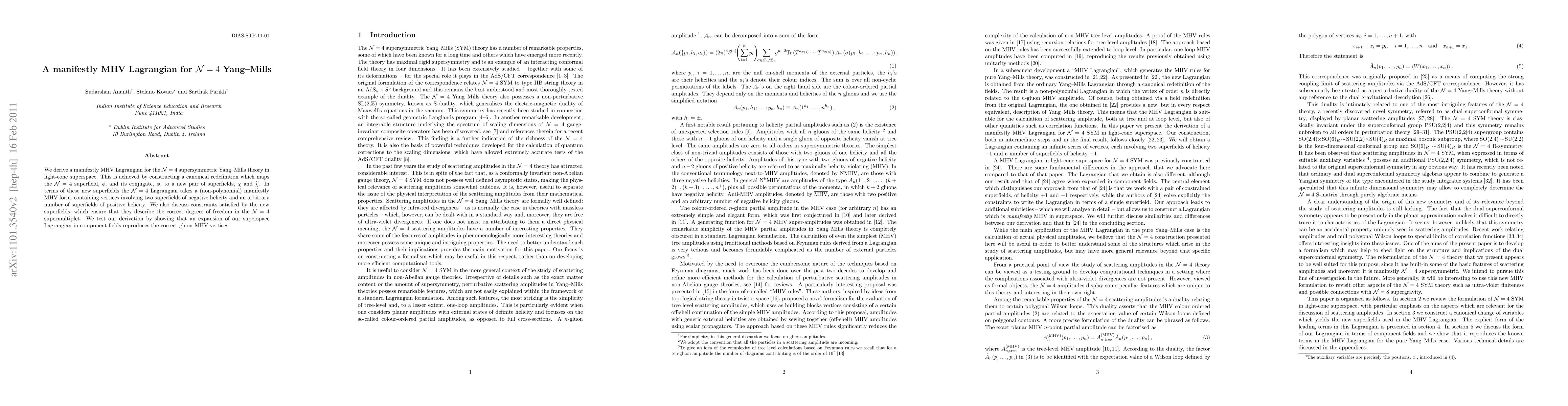 This paper presents a manifestly MHV Lagrangian for N=4 supersymmetric Yang-Mills theory using a canonical redefinition in light-cone superspace, ensuring the correct degrees of freedom and verifying the derivation through component field expansion.
